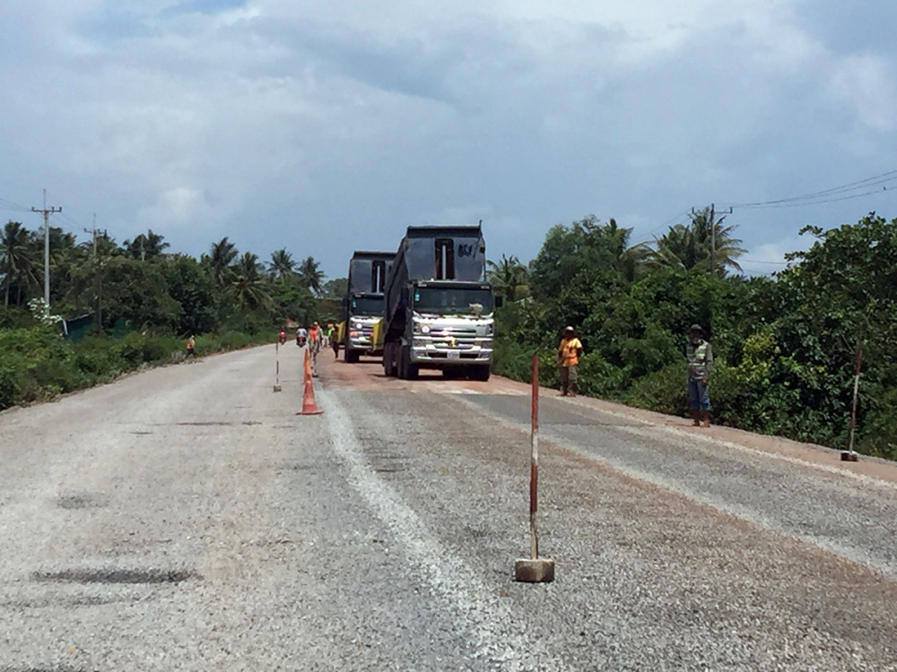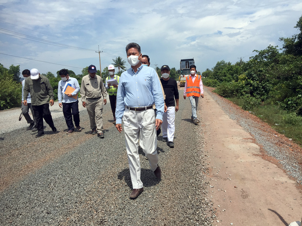 ឯកឧត្តម ស៊ុន ចាន់ថុល ទេសរដ្ឋមន្ត្រី រដ្ឋមន្ត្រីក្រសួងសាធារណការ និងដឹកជញ្ជូន អញ្ជើញដឹកនាំក្រុមការងារបច្ចេកទេស នៃក្រសួងសាធារណការ និងដឹកជញ្ជូន បន្តចុះត្រួតពិនិត្យវឌ្ឍនភាពការសាងសង់ផ្លូវជាតិលេខ៣ (កំពត-វាលរេញ) នាថ្ងៃទី០៥ ខែមិថុនា ឆ្នាំ២០២១។