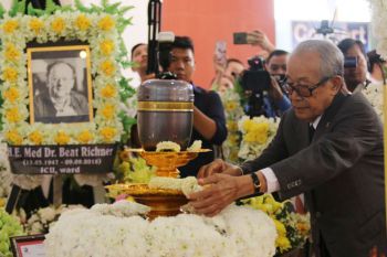 AKP Phnom Penh, December 05, 2018 -- The ashes of late H.E. Dr. Med. Beat Richner, Founder of the Kantha Bopha Foundation, will be kept at a stupa in front of Jayavarman VII Children’s Hospital in Siem Reap province. This morning, there was a procession of his ashes from Siem Reap International Airport to the hospital in the presen...