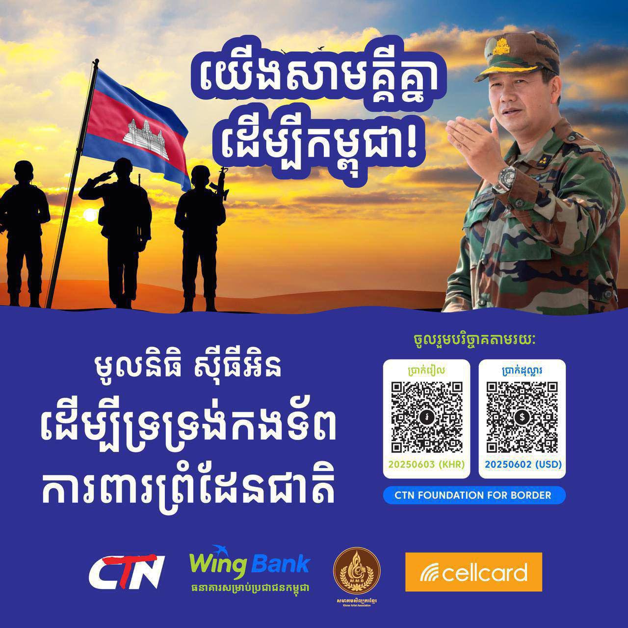 AKP Phnom Penh, le 11 juin 2025 -- Le président du Sénat, Samdech Akka Moha Sena Padei Techo Hun Sèn, a appelé tous les Cambodgiens à contribuer à la Fondation CTN afin de soutenir les troupes stationnées le long des frontières du pays. Dans un message sur ses réseaux sociaux ce soir, Samdech Techo a annoncé le lanc...