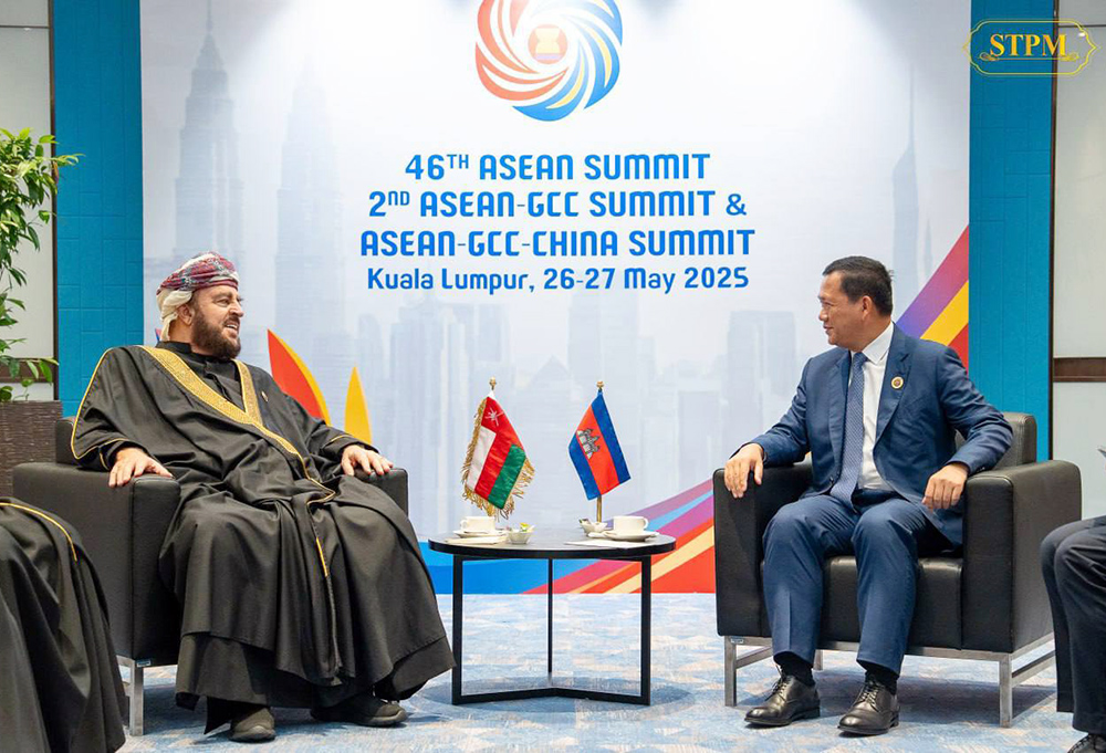 AKP Phnom Penh, le 27 mai 2025 -- Samdech Moha Borvor Thipadei Hun Manet, Premier ministre du Royaume du Cambodge, a reçu ce matin à Kuala Lumpur, en Malaisie, Son Altesse Sayyid Asaad bin Tarik Al Said, vice-Premier ministre des Relations internationales et de la Coopération d’Oman, en marge du 46e Sommet de l’ASEA...