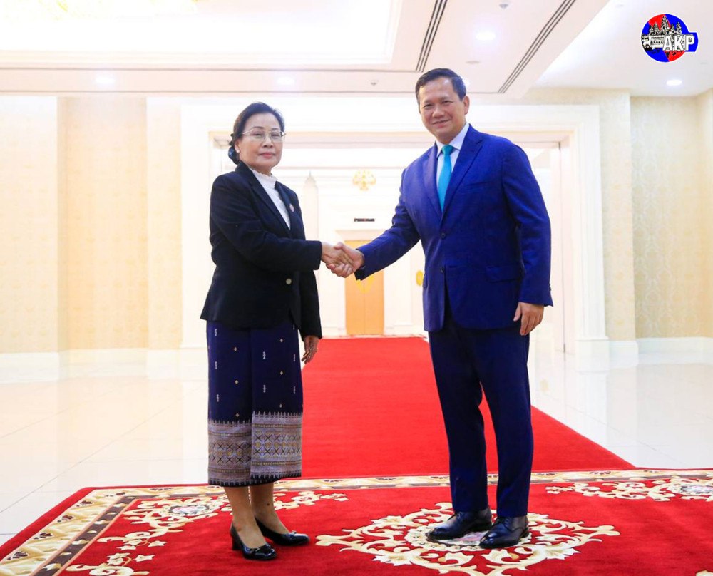 AKP Phnom Penh, le 05 mai 2025 -- Samdech Moha Borvor Thipadei HUN Manet, Premier ministre du Royaume du Cambodge, a reçu cet après-midi au Palais de la Paix, à Phnom Penh, Mme Viengthong Siphandone, présidente de la Cour populaire suprême de la République démocratique populaire lao. Selon le porte-parole de Samdech...