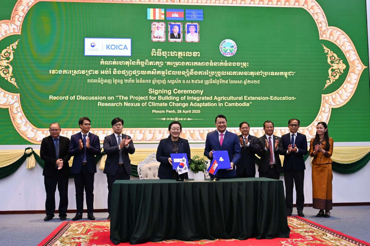 AKP Phnom Penh, le 28 avril 2025 -- Le ministère de l'Agriculture, des Forêts, de la Chasse et de la Pêche et l'Agence coréenne pour la coopération internationale (KOICA) ont signé ce matin un procès-verbal visant à renforcer la résilience de l'agriculture face au changement climatique en rehaussant les capacités de...