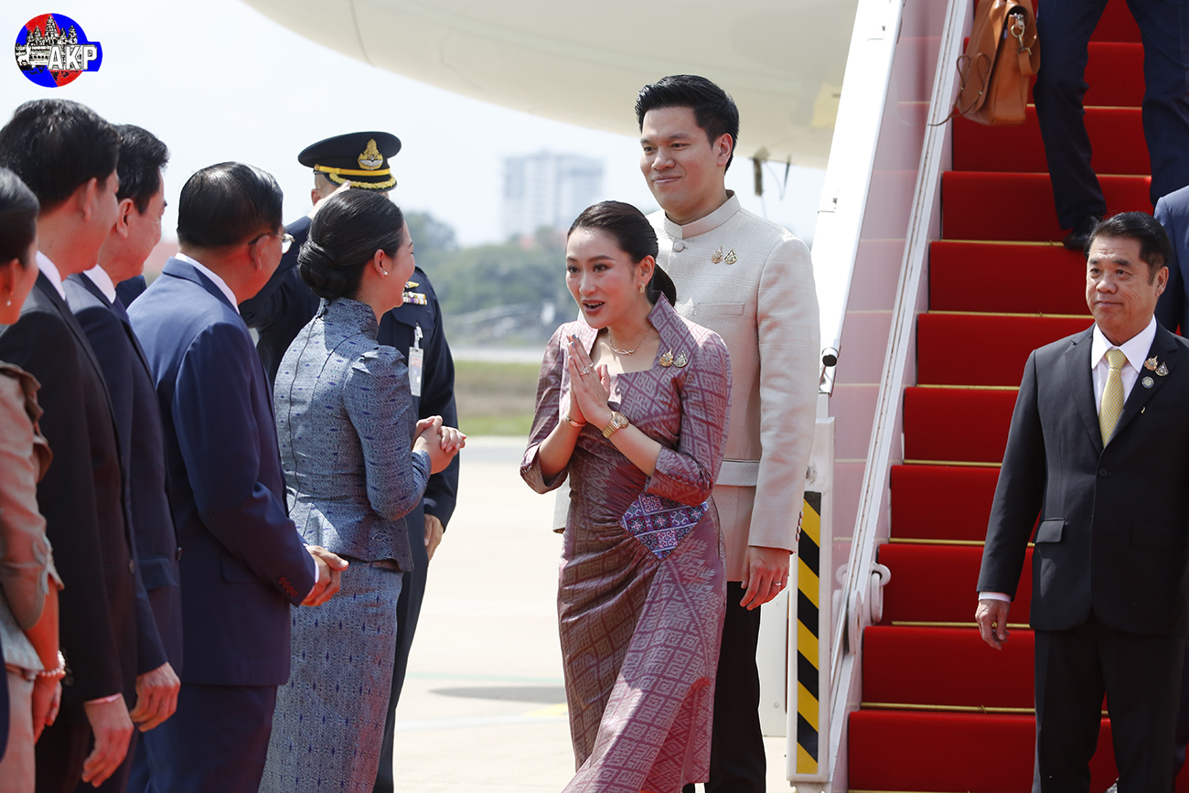 AKP Phnom Penh, le 23 avril 2025 -- La Première ministre du Royaume de Thaïlande, Mme Paetongtarn Shinawatra, et son époux ont entamé ce matin leur visite officielle de deux jours au Royaume du Cambodge. Mme Paetongtarn Shinawatra et sa haute délégation ont été chaleureusement accueillies à leur arrivée à l'aérop...