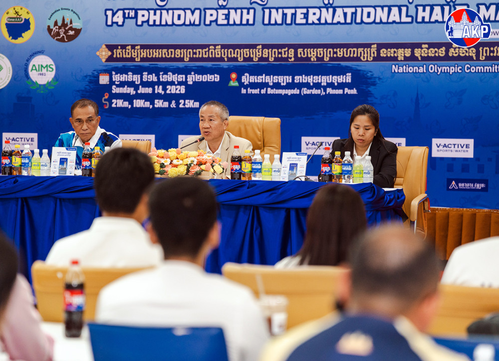 Vath Chamroeun (photo 1), secrétaire d'Etat à l'Education, à la Jeunesse et aux Sports et secrétaire général du Comité national olympique du Cambodge (CNOC), donne cet après-midi, au siège du CNOC à Phnom Penh, une conférence de presse sur le 14e semi-marathon international de Phnom Penh 2026, qui se tiendra le 14 juin prochain pour célébrer l'anniversaire de Sa Majesté la Reine-Mère Norodom Monineath Sihanouk (18 juin).