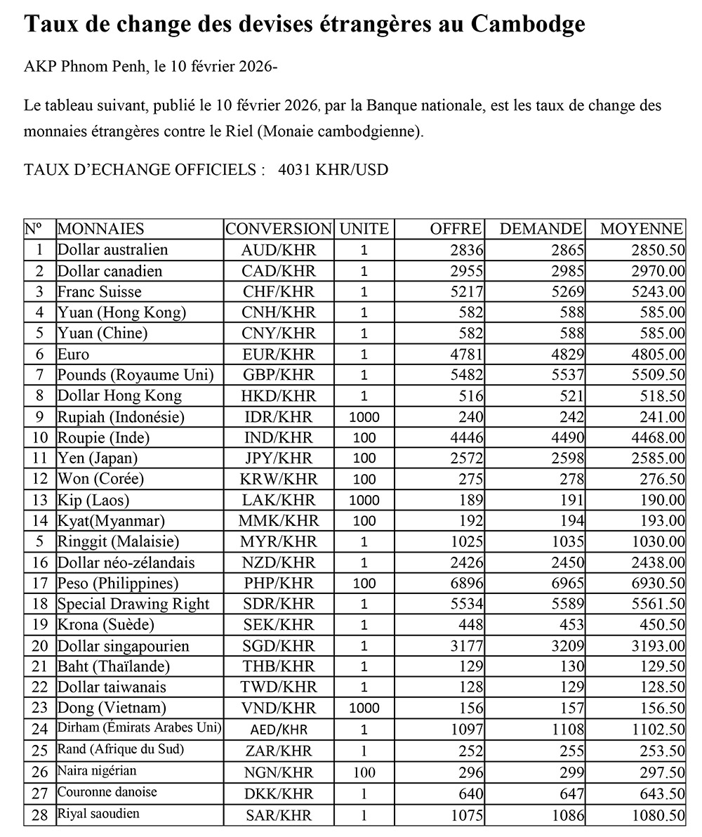 Taux de change des devises étrangères au Cambodge
