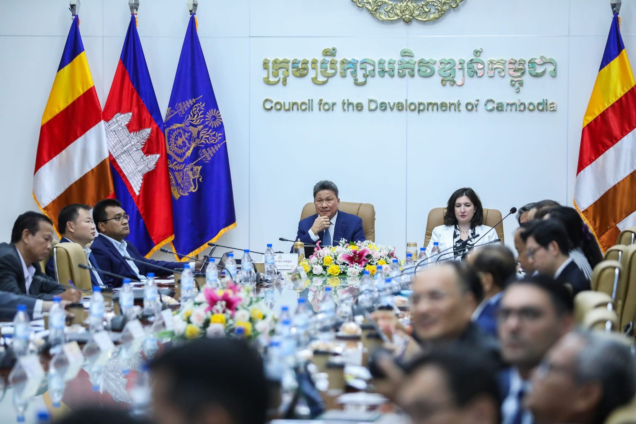 AKP ភ្នំពេញថ្ងៃទី០៥ ខែកុម្ភៈ ឆ្នាំ ២០២៥៖ ក្រុមប្រឹក្សាអភិវឌ្ឍន៍កម្ពុជា និងនាយិកាគ្រប់គ្រងធនាគារពិភពលោក (World Bank) ប្រចាំនៅកម្ពុជា ប្រជុំពិនិត្យពិភាក្សាលើបទបង្ហាញតាមប្រព័ន្ធវីដេអូពីចម្ងាយ ស្តីពី វិ ធីសាស្រ្ត និងនីតិវិធីក្នុងការប្រមូលទិន្នន័យចំពោះ “សន្ទស្សន៍ប្រតិបត្តិការភស្តុភារកម្ម(Logistic Perf...