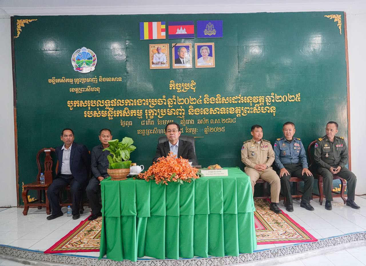 AKP ព្រះសីហនុ ថ្ងៃទី០៥ ខែកុម្ភៈ ឆ្នាំ២០២៥-- ឯកឧត្តម ម៉ាង ស៊ីណេត អភិបាលនៃគណៈអភិបាលខេត្តព្រះសីហនុ អញ្ជើញបើកសន្និបាតបូកសរុបលទ្ធផលការងារឆ្នាំ២០២៤ និងលើកទិសដៅអនុវត្តឆ្នាំ២០២៥ របស់មន្ទីរកសិកម្ម និងនេសាទខេត្តព្រះសីហនុ នាព្រឹកថ្ងៃពុធ ទី០៥ ខែកុម្ភៈ ឆ្នាំ២០២៥ នៅសាលប្រជុំមន្ទីរកសិកម្ម រុក្ខាប្រមាញ់ និងនេសាទ ដោ...
