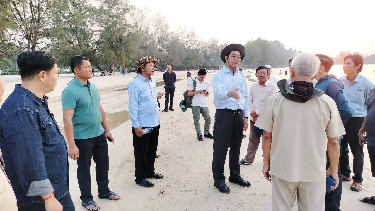 AKP ព្រះសីហនុ ថ្ងៃទី០២ ខែកុម្ភៈ ឆ្នាំ២០២៥-- ឯកឧត្តម ម៉ាង ស៊ីណេត អភិបាលនៃគណៈអភិបាលខេត្តព្រះសីហនុ ឯកឧត្តមរដ្ឋមន្ត្រីក្រសួងបរិស្ថាន និងឯកឧត្តម រដ្ឋមន្ត្រីក្រសួងរ៉ែ និងថាមពល បានអញ្ជើញចុះពិនិត្យ ការសម្អាតប្រេងដែលអណ្តែតមកលើឆ្នេរព្រែកត្រែង ស្ថិតនៅភូមិ៣ សង្កាត់លេខ១ ក្រុងព្រះសីហនុ កាលពីរសៀលថ្ងៃទី០១ ខែមករា ឆ្...