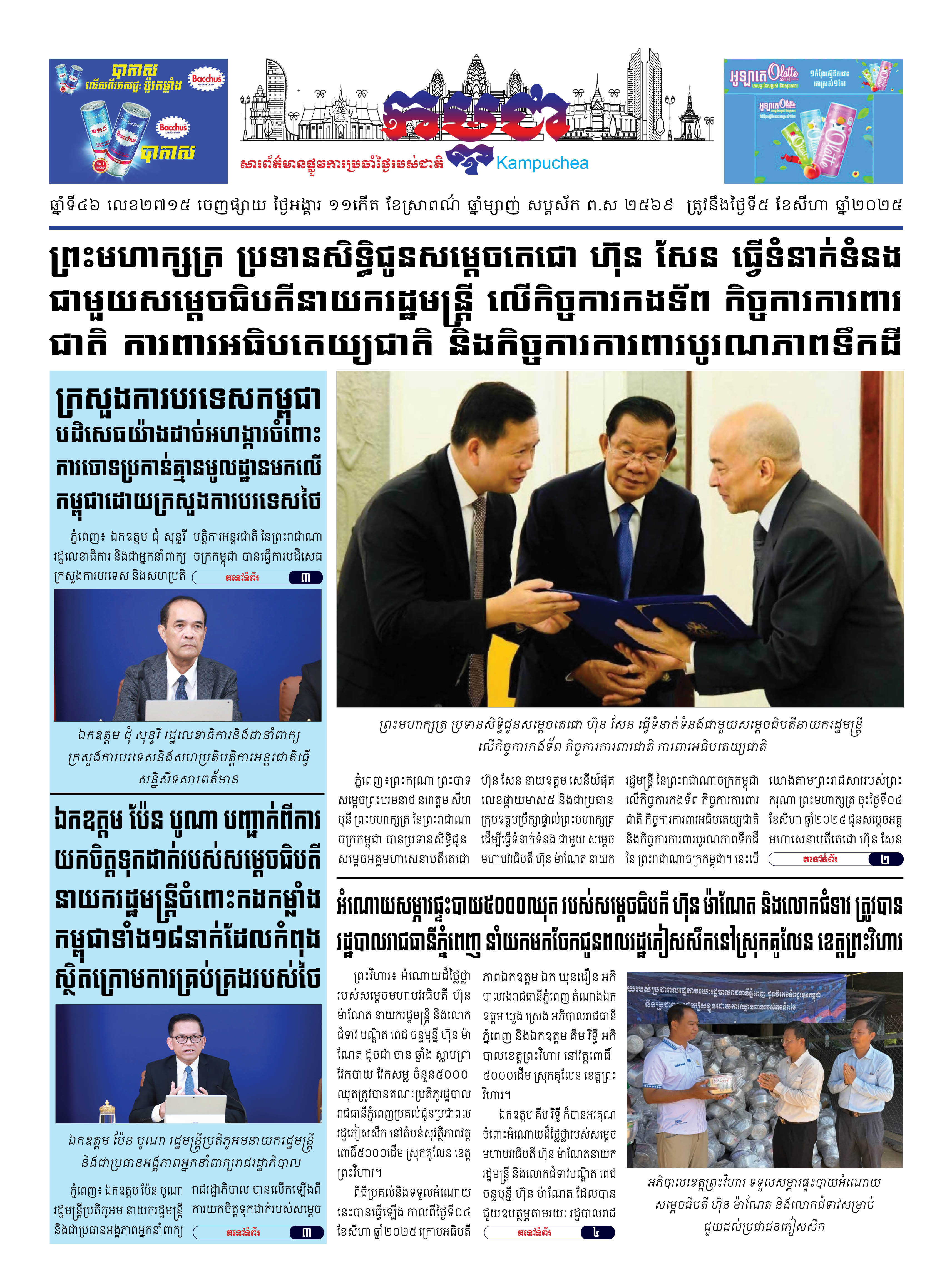 កាសែតកម្ពុជាលេខ២៧១៥ ចេញផ្សាយថ្ងៃអង្គារ ទី០៥ ខែសីហា ឆ្នាំ២០២៥