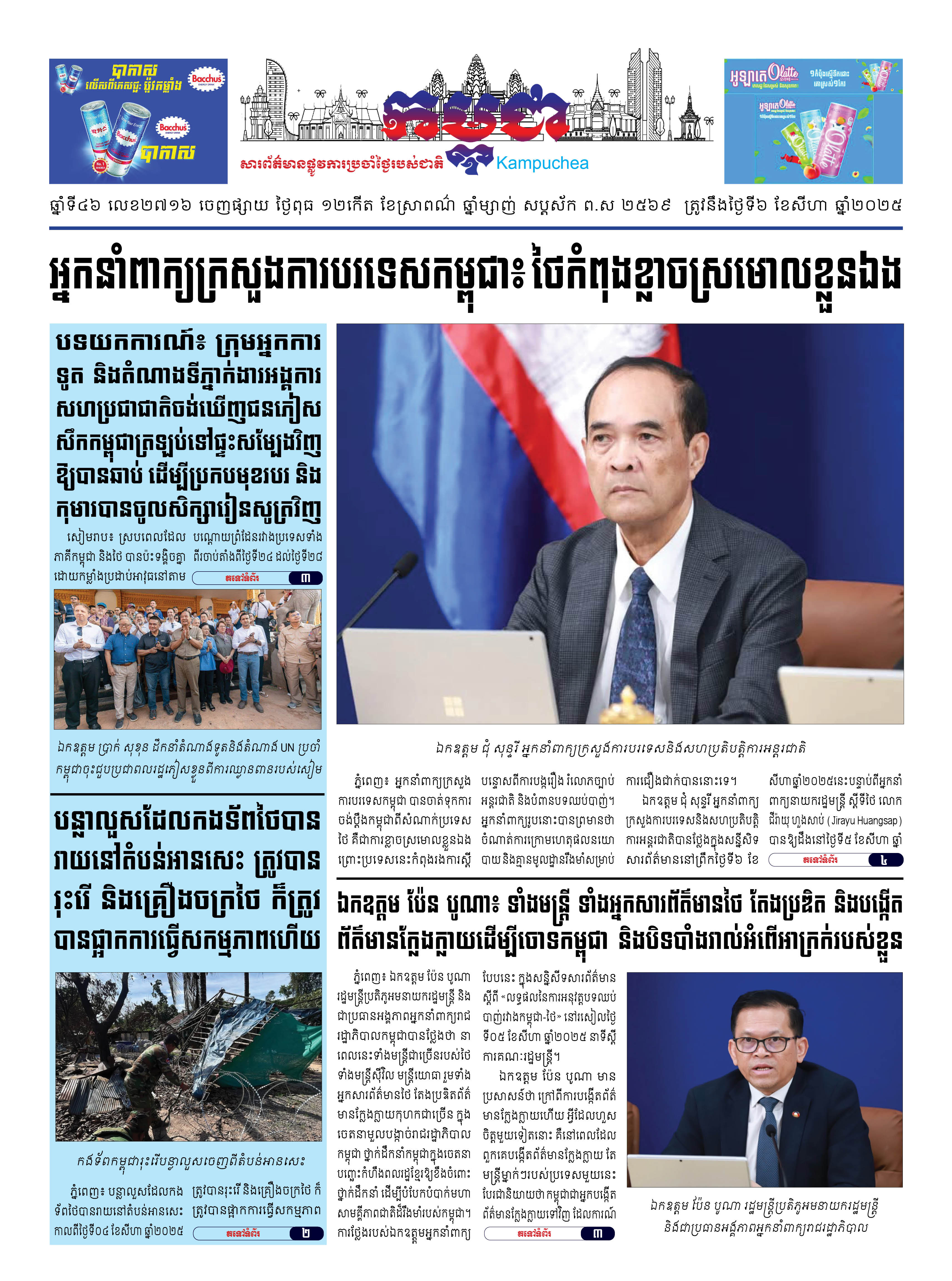 កាសែតកម្ពុជាលេខ២៧១៦ ចេញផ្សាយថ្ងៃពុធ ទី០៦ ខែសីហា ឆ្នាំ២០២៥