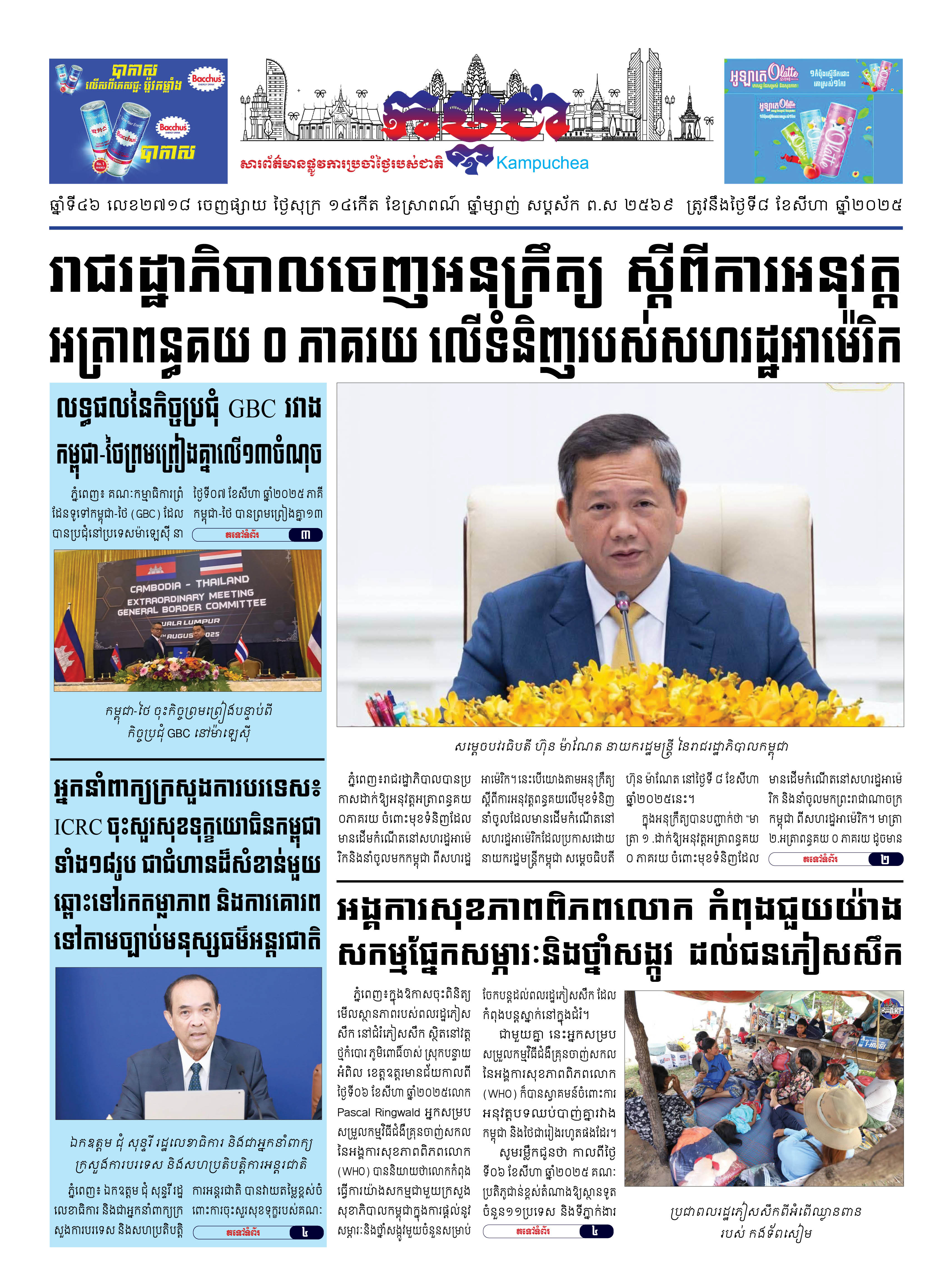 កាសែតកម្ពុជាលេខ២៧១៨ ចេញផ្សាយថ្ងៃសុក្រ ទី០៨ ខែសីហា ឆ្នាំ២០២៥