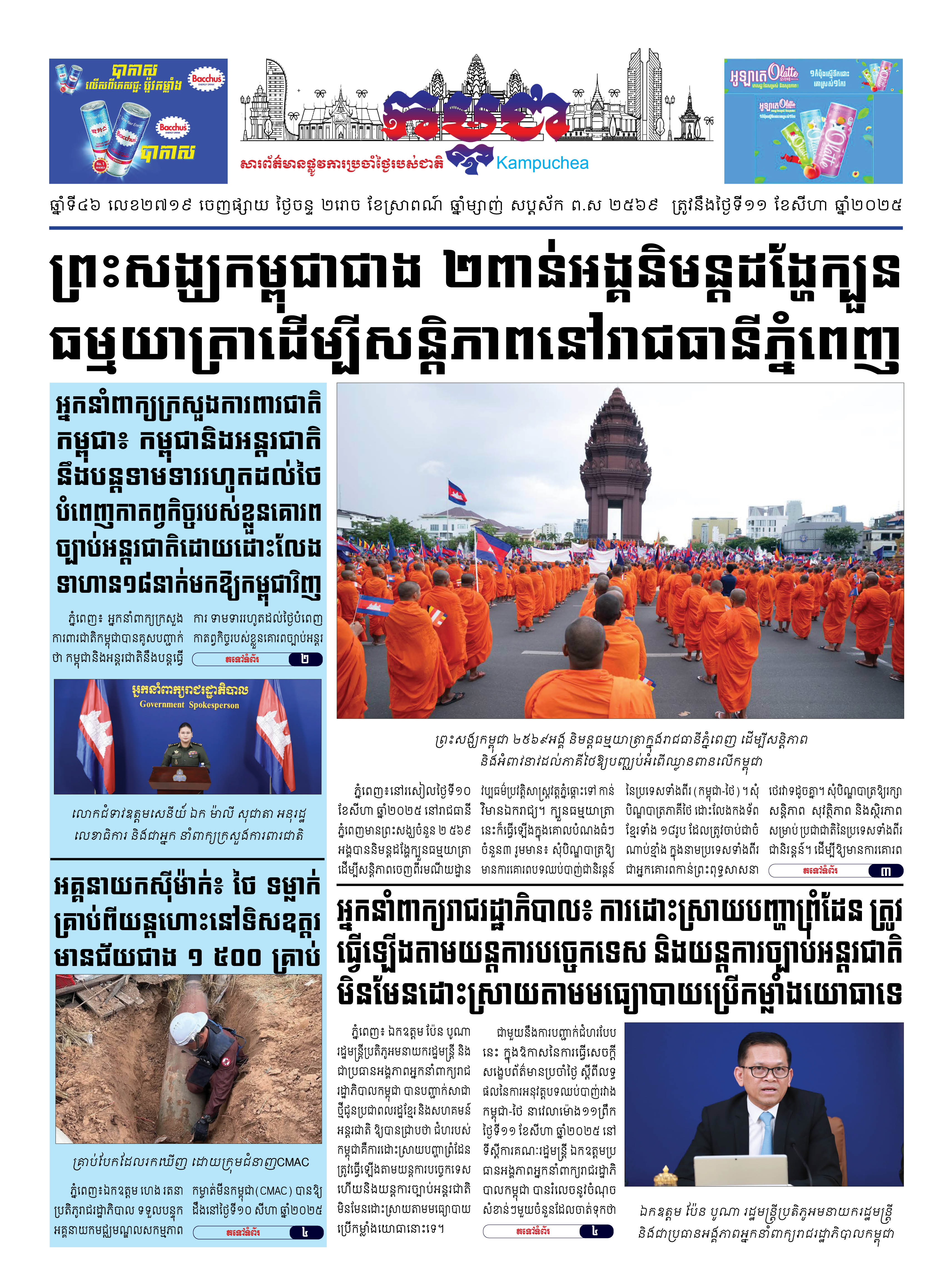 កាសែតកម្ពុជាលេខ២៧១៩ ចេញផ្សាយថ្ងៃចន្ទ ទី១១ ខែសីហា ឆ្នាំ២០២៥