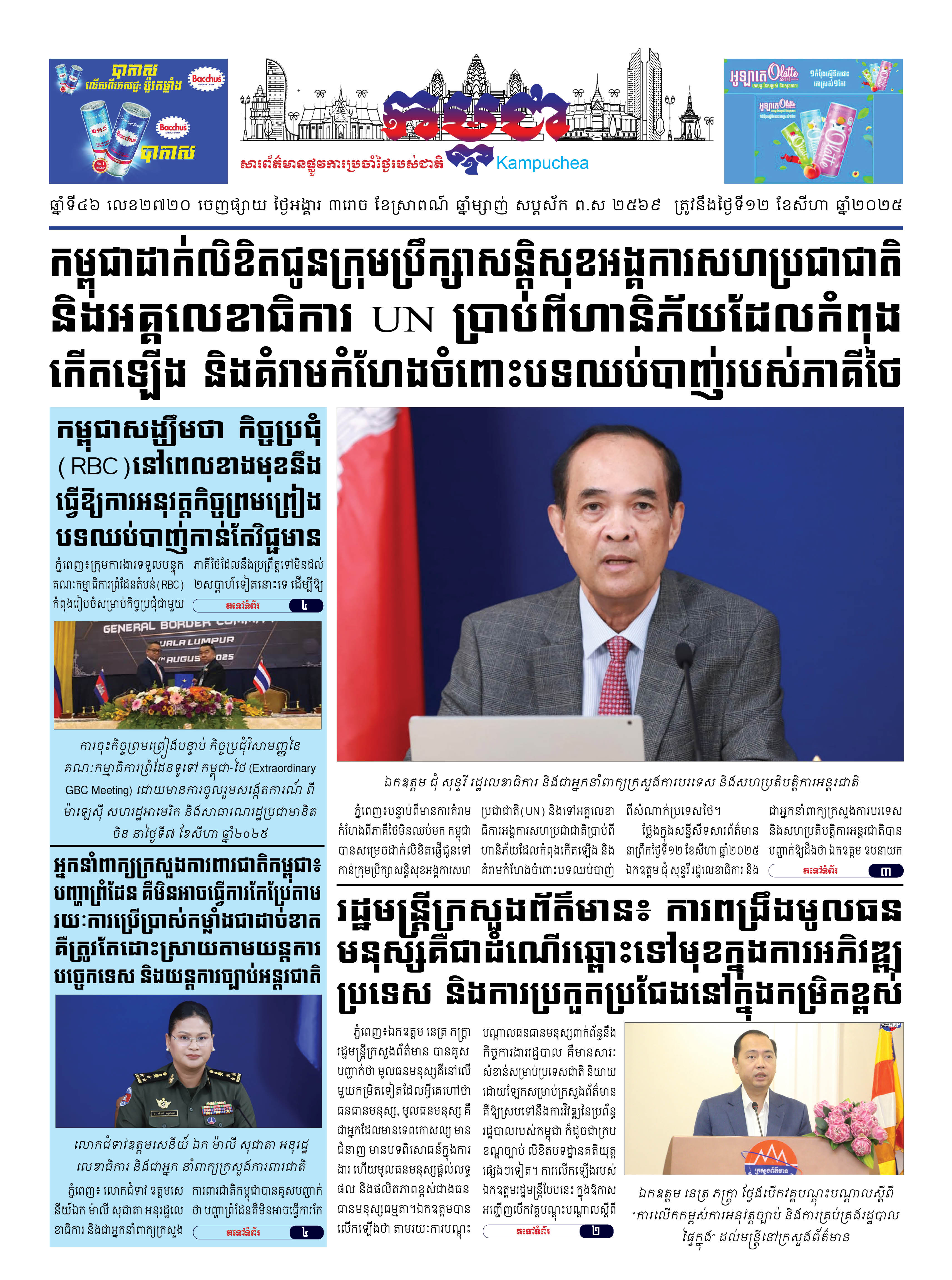 កាសែតកម្ពុជាលេខ២៧២០ ចេញផ្សាយថ្ងៃអង្គារ ទី១២ ខែសីហា ឆ្នាំ២០២៥