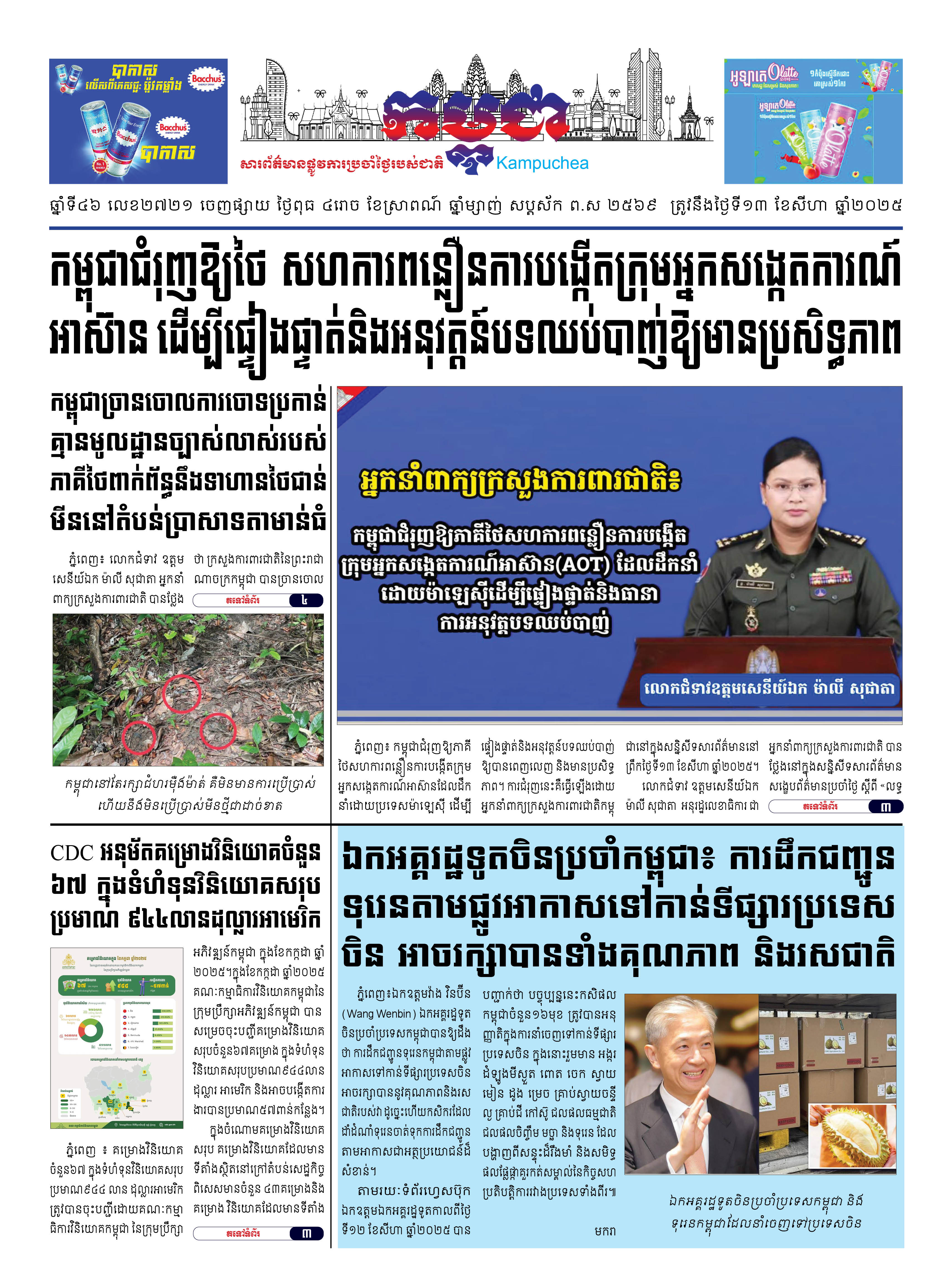 កាសែតកម្ពុជាលេខ២៧២១ ចេញផ្សាយថ្ងៃពុធ ទី១៣ ខែសីហា ឆ្នាំ២០២៥