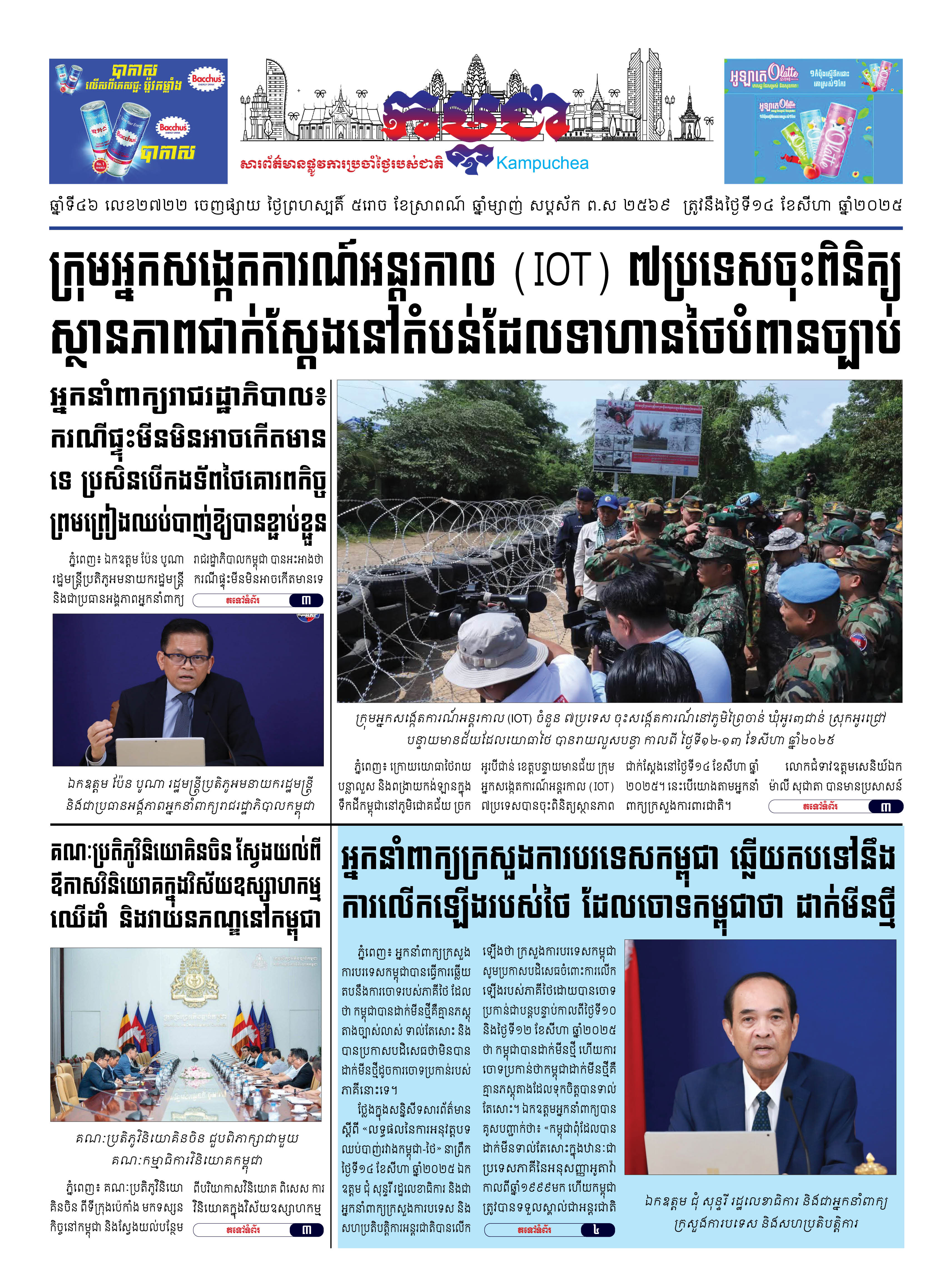 កាសែតកម្ពុជាលេខ២៧២២ ចេញផ្សាយថ្ងៃព្រហស្បតិ៍ ទី១៤ ខែសីហា ឆ្នាំ២០២៥