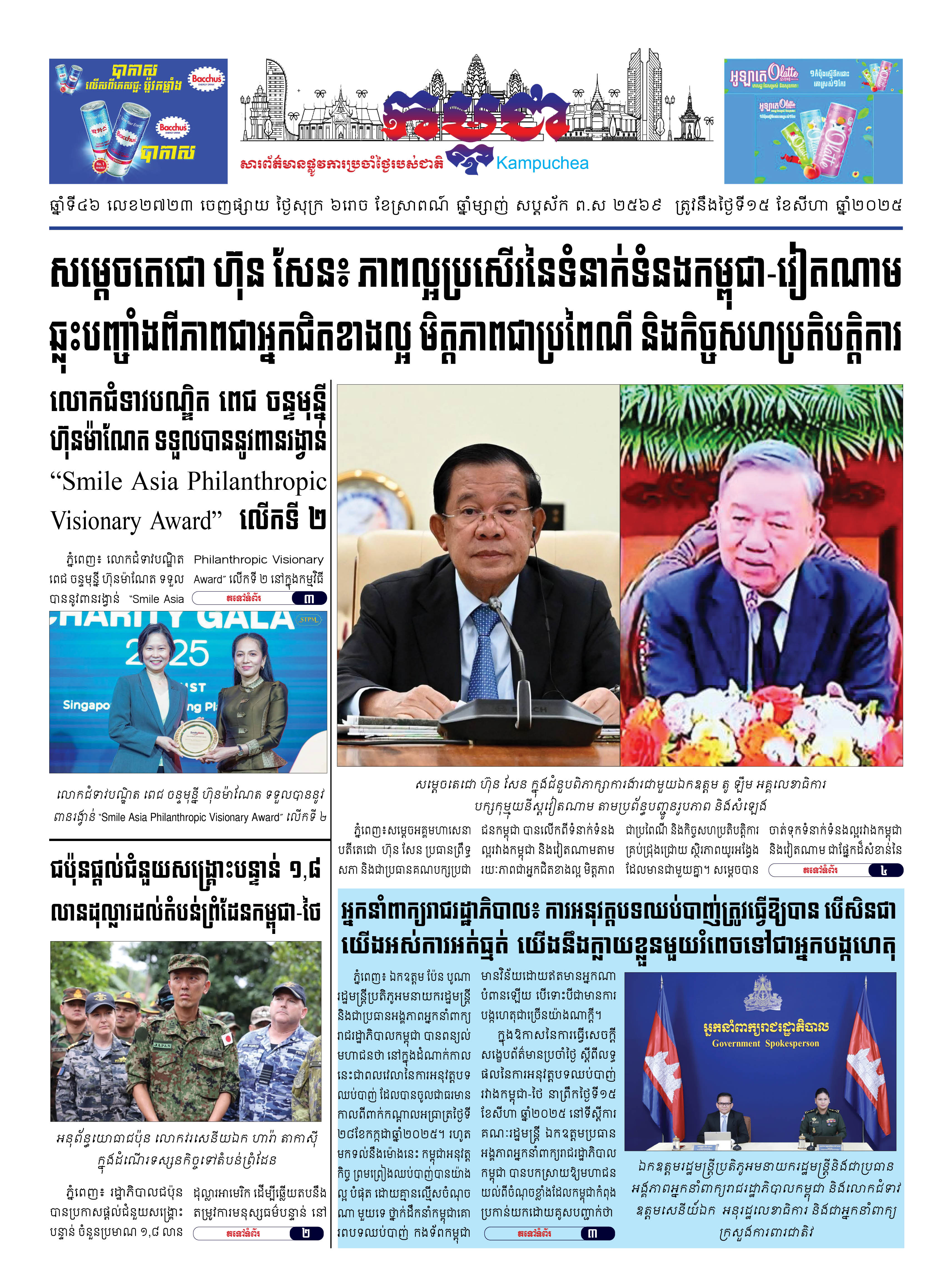 កាសែតកម្ពុជាលេខ២៧២៣ ចេញផ្សាយថ្ងៃសុក្រ ទី១៥ ខែសីហា ឆ្នាំ២០២៥
