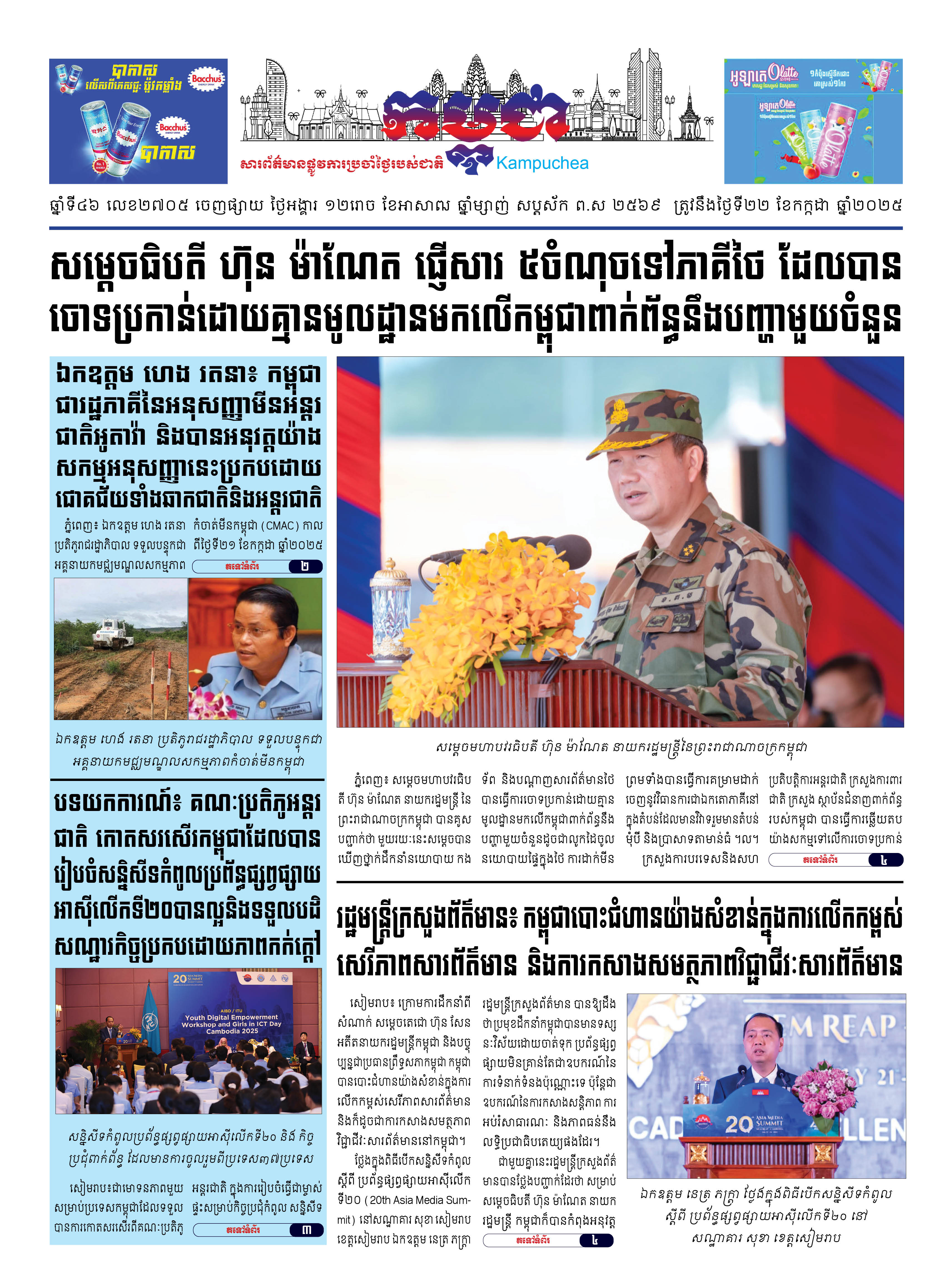 កាសែតកម្ពុជាលេខ២៧០៥ ចេញផ្សាយថ្ងៃអង្គារ ទី២២ ខែកក្កដា ឆ្នាំ២០២៥