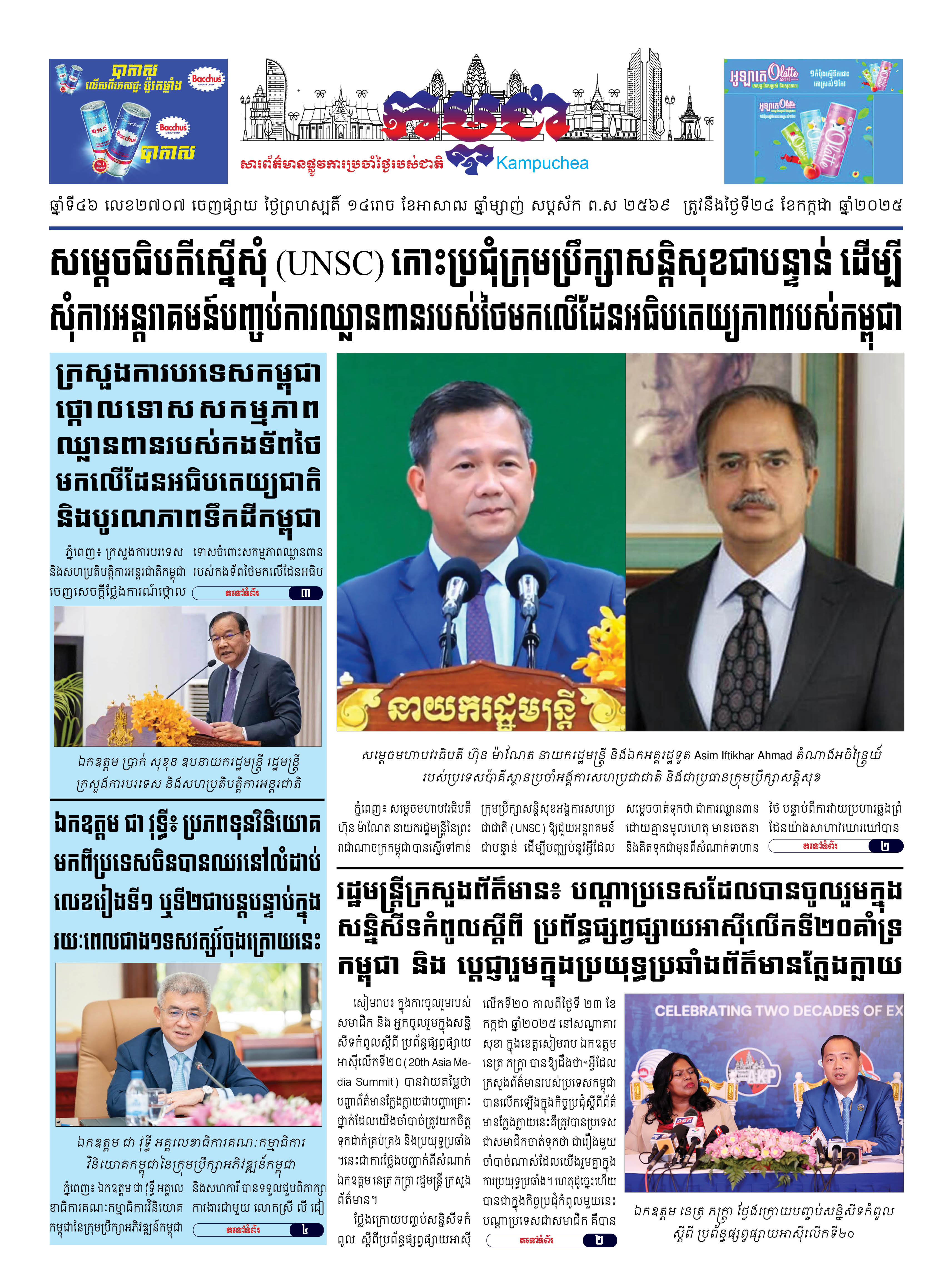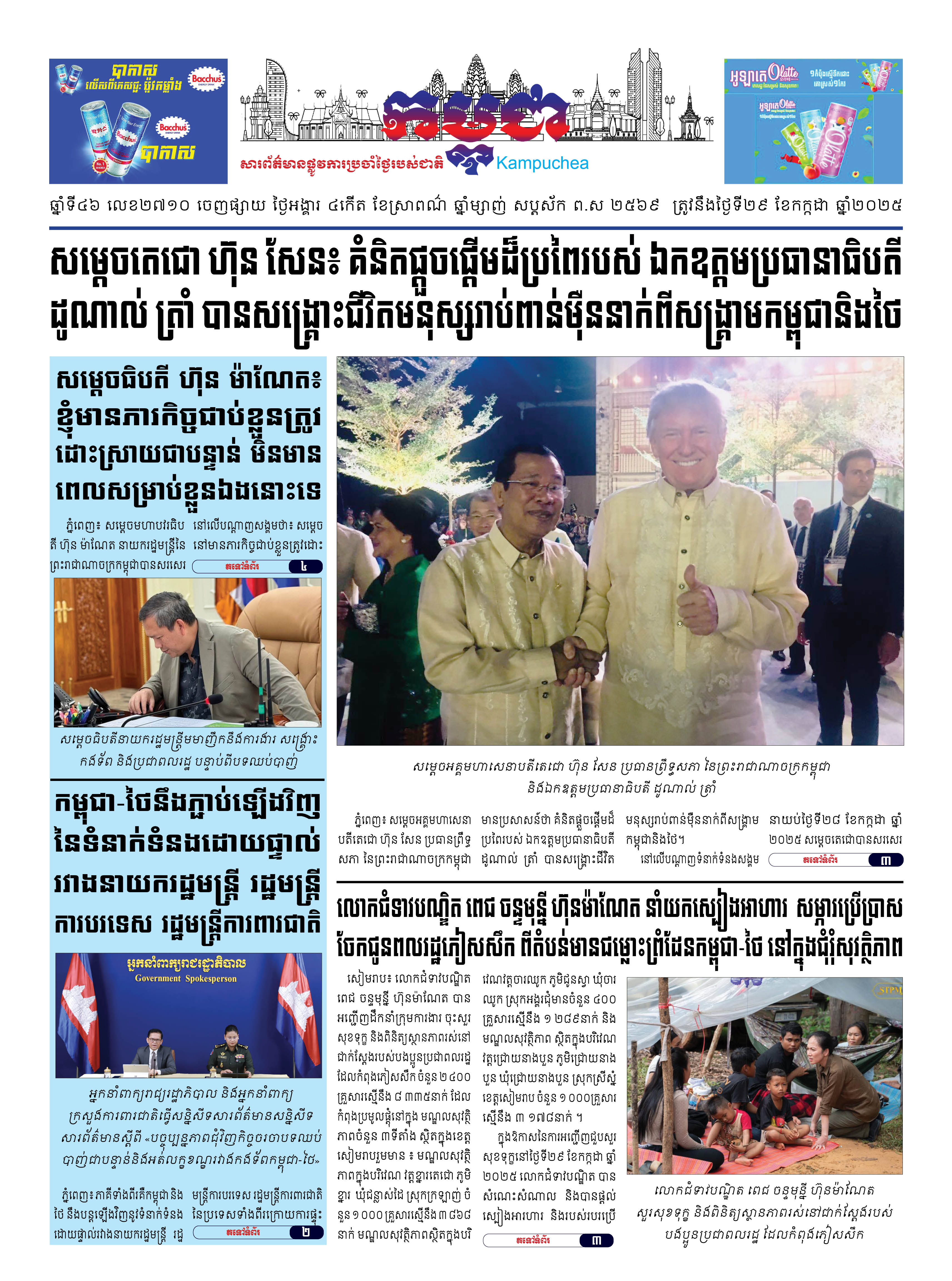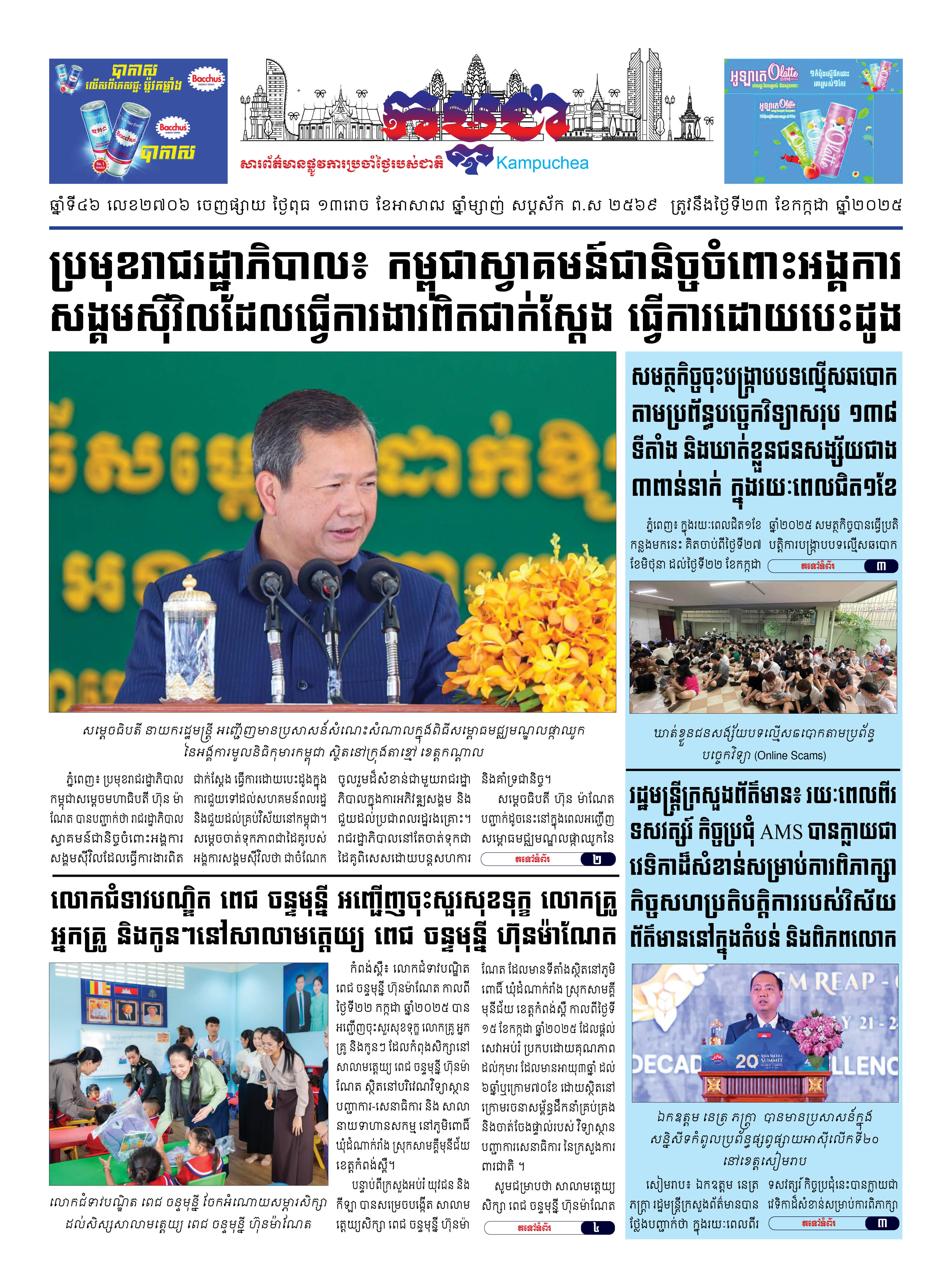 កាសែតកម្ពុជាលេខ២៧០៦ ចេញផ្សាយថ្ងៃពុធ ទី២៣ ខែកក្កដា ឆ្នាំ២០២៥