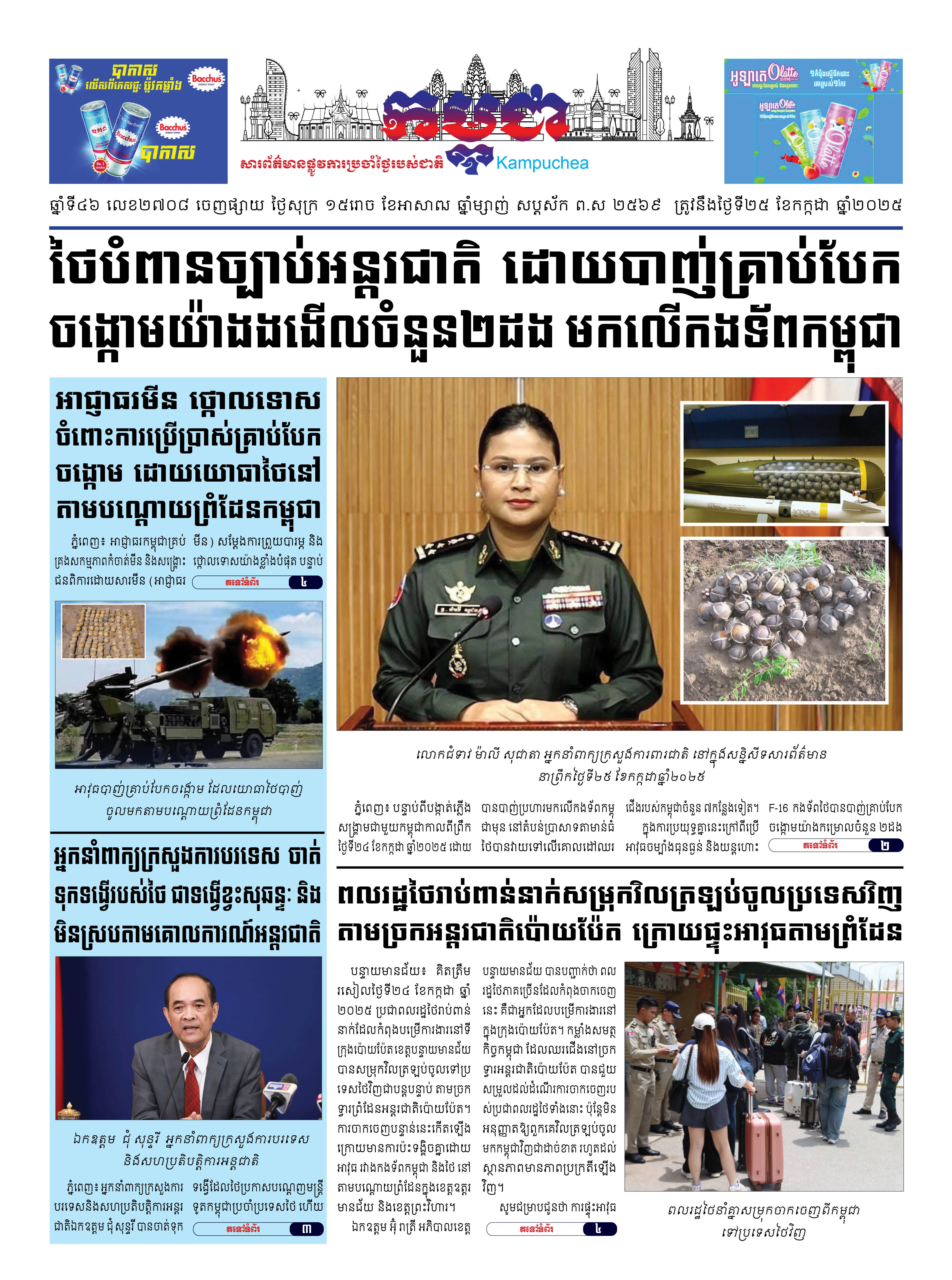 កាសែតកម្ពុជាលេខ២៧០៨ ចេញផ្សាយថ្ងៃសុក្រ ទី២៥ ខែកក្កដា ឆ្នាំ២០២៥