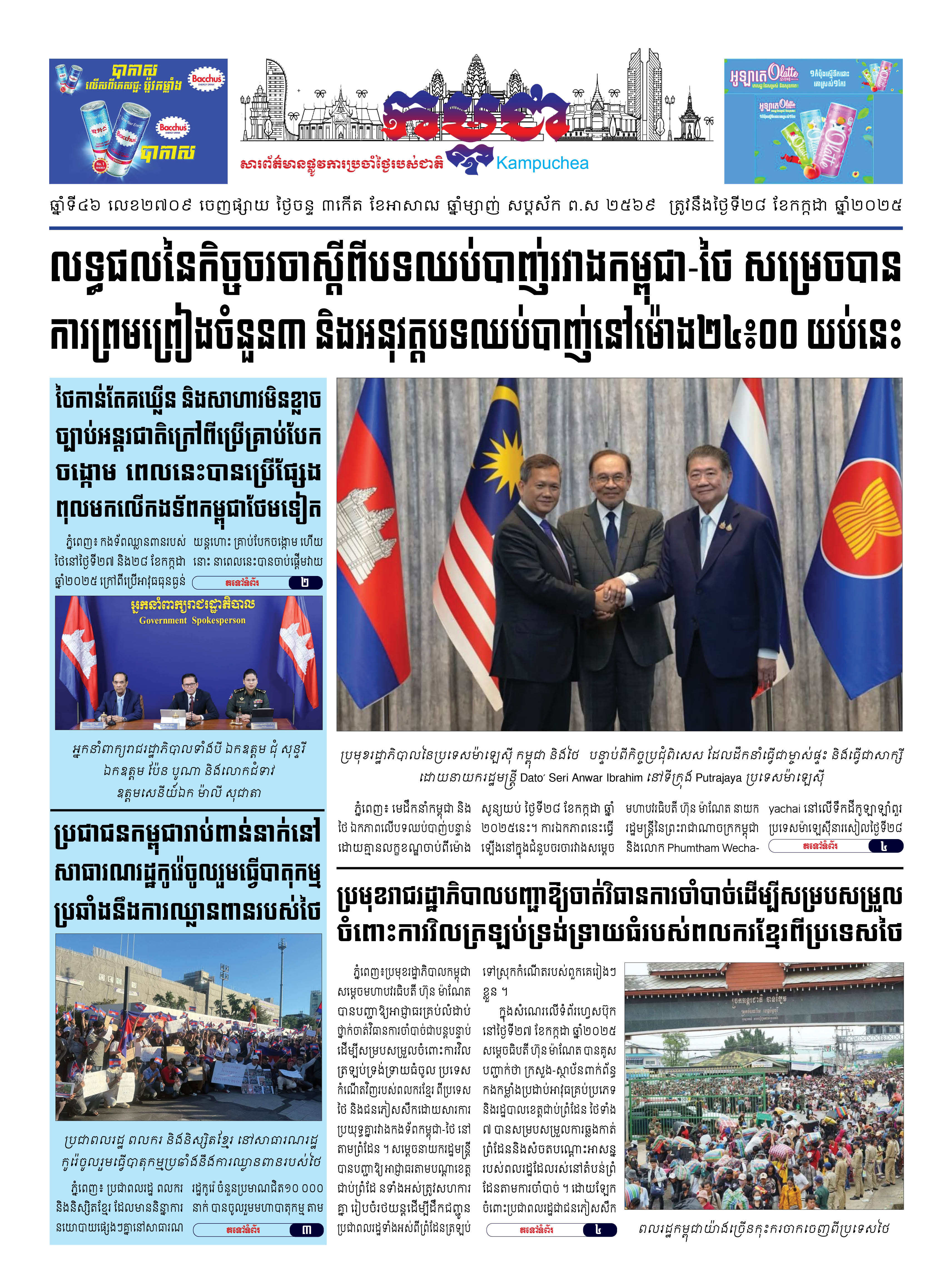 កាសែតកម្ពុជាលេខ២៧០៩ ចេញផ្សាយថ្ងៃចន្ទ ទី២៨ ខែកក្កដា ឆ្នាំ២០២៥