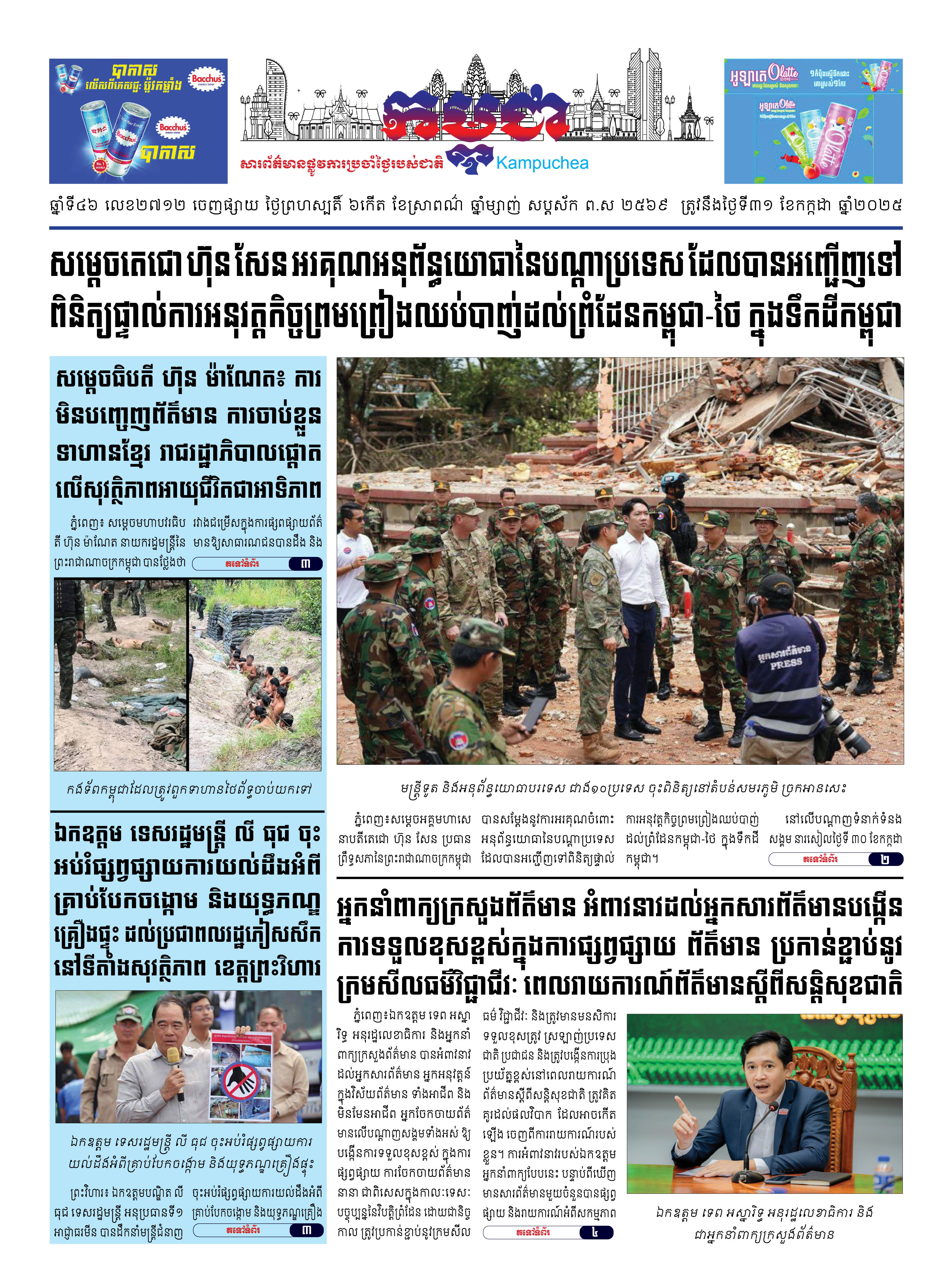 កាសែតកម្ពុជាលេខ២៧១២ ចេញផ្សាយថ្ងៃព្រហស្បតិ៍ ទី៣១ ខែកក្កដា ឆ្នាំ២០២៥