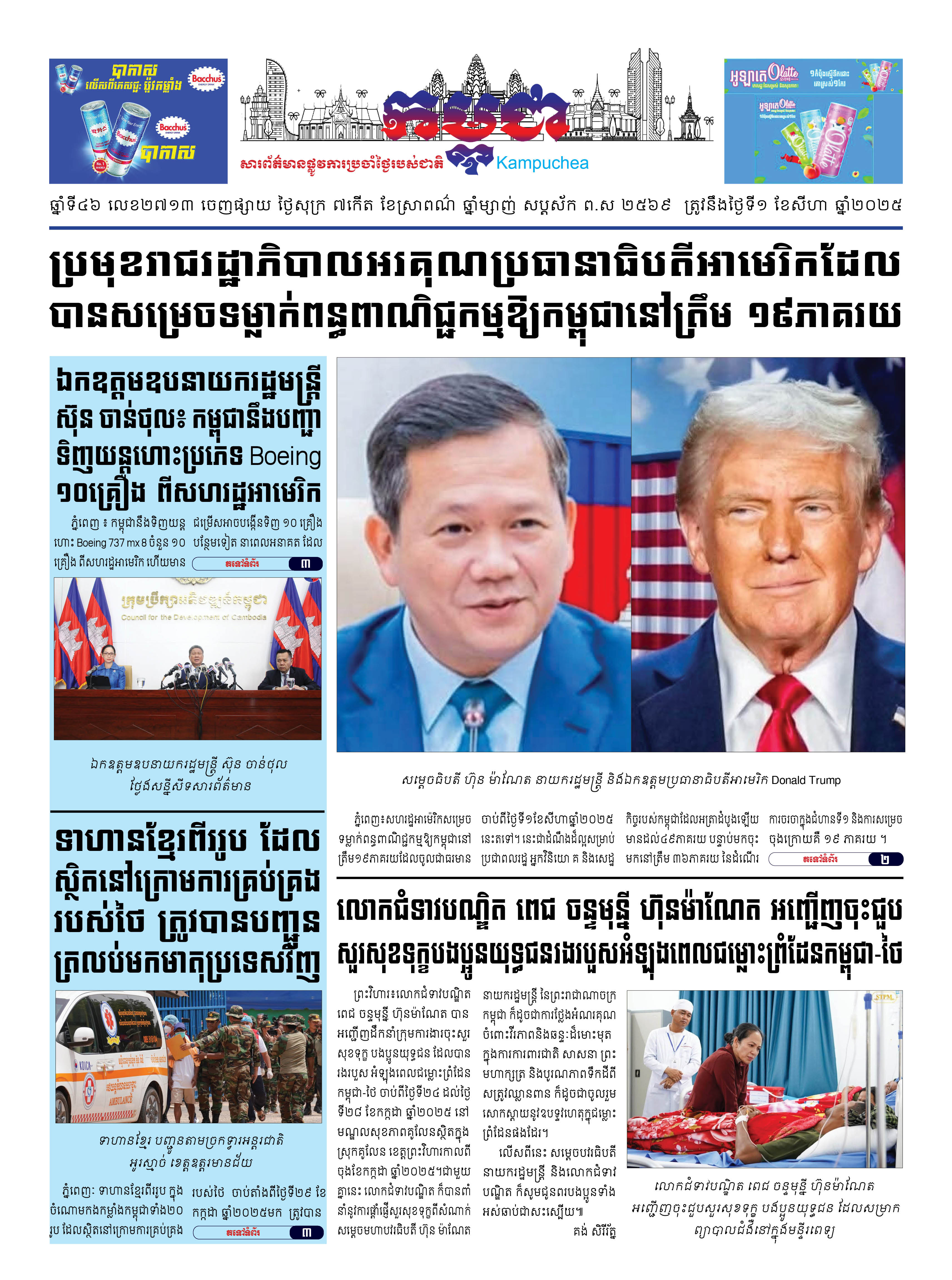 កាសែតកម្ពុជាលេខ២៧១៣ ចេញផ្សាយថ្ងៃសុក្រ ទី០១ ខែសីហា ឆ្នាំ២០២៥