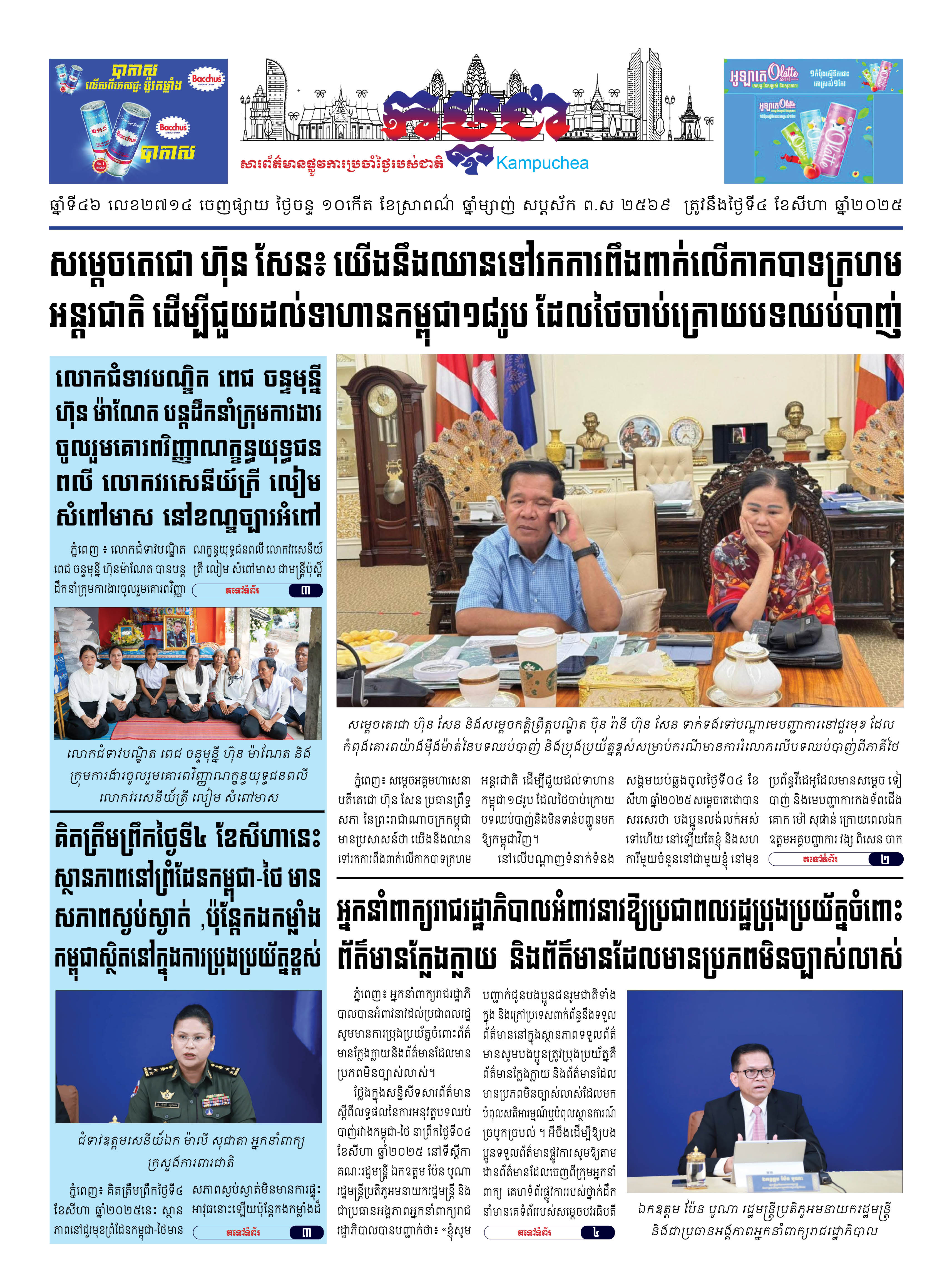 កាសែតកម្ពុជាលេខ២៧១៤ ចេញផ្សាយថ្ងៃចន្ទ ទី០៤ ខែសីហា ឆ្នាំ២០២៥