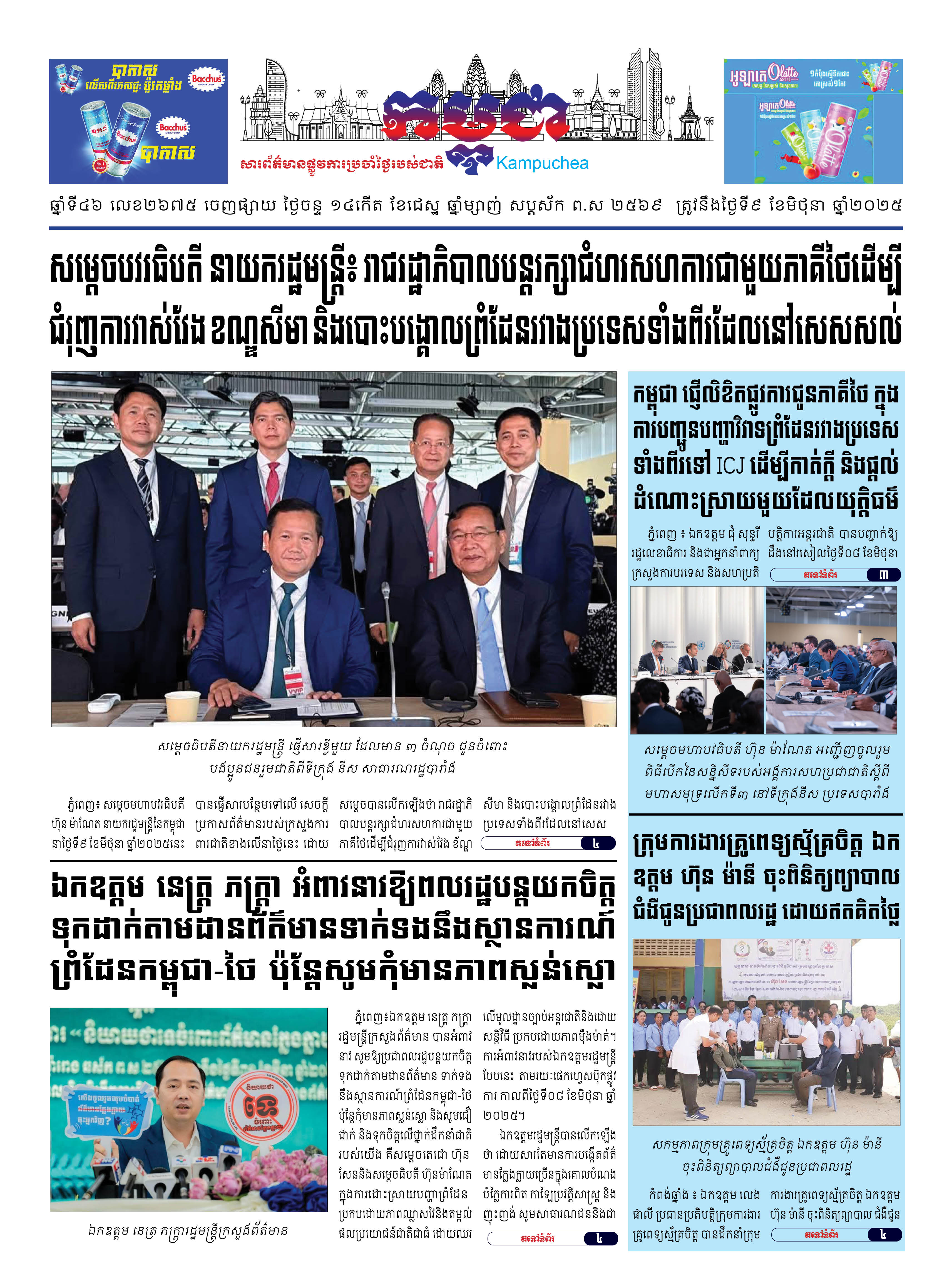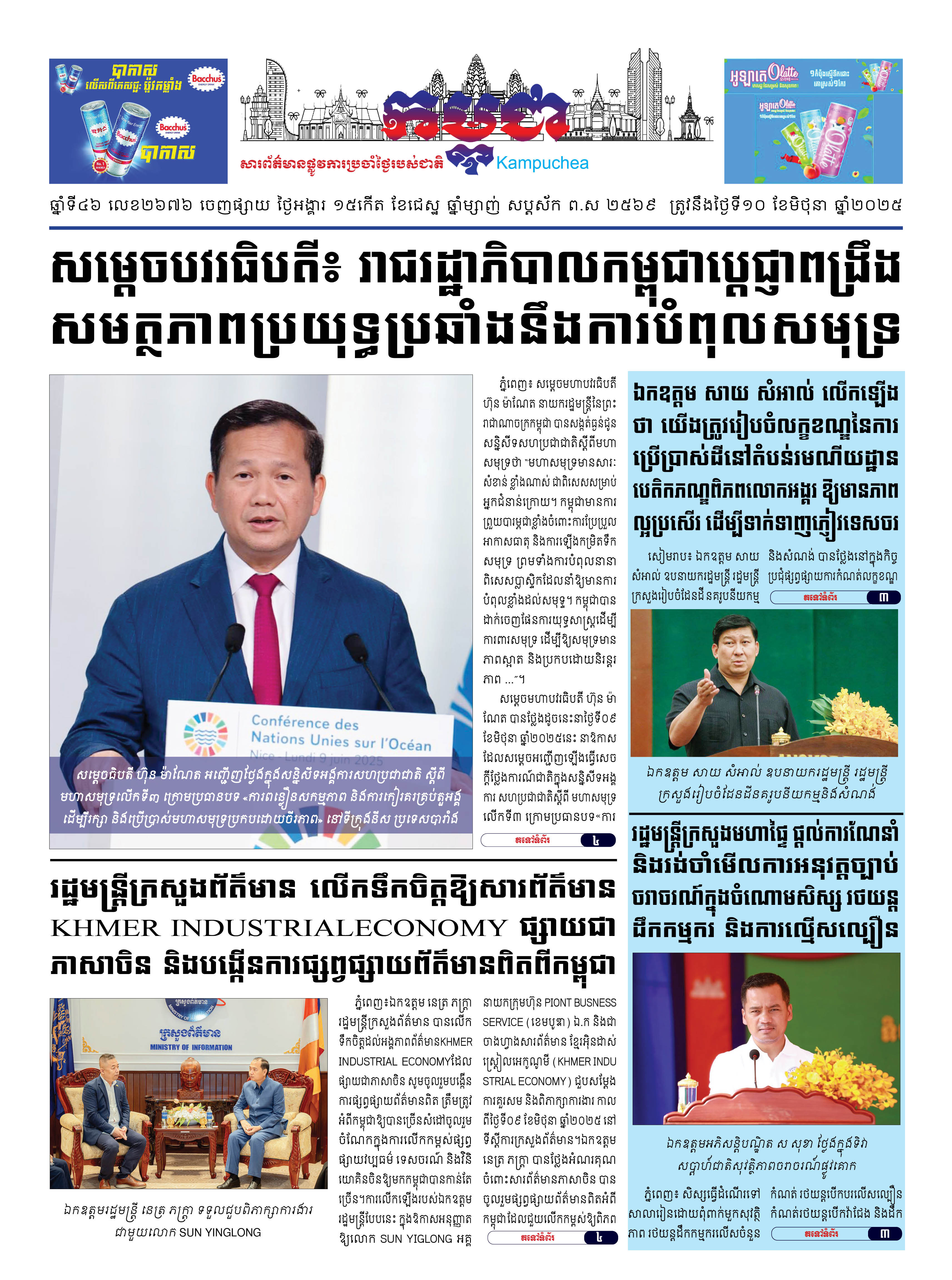 កាសែតកម្ពុជាលេខ២៦៧៦ ចេញផ្សាយថ្ងៃអង្គារ ទី១០ ខែមិថុនា ឆ្នាំ២០២៥