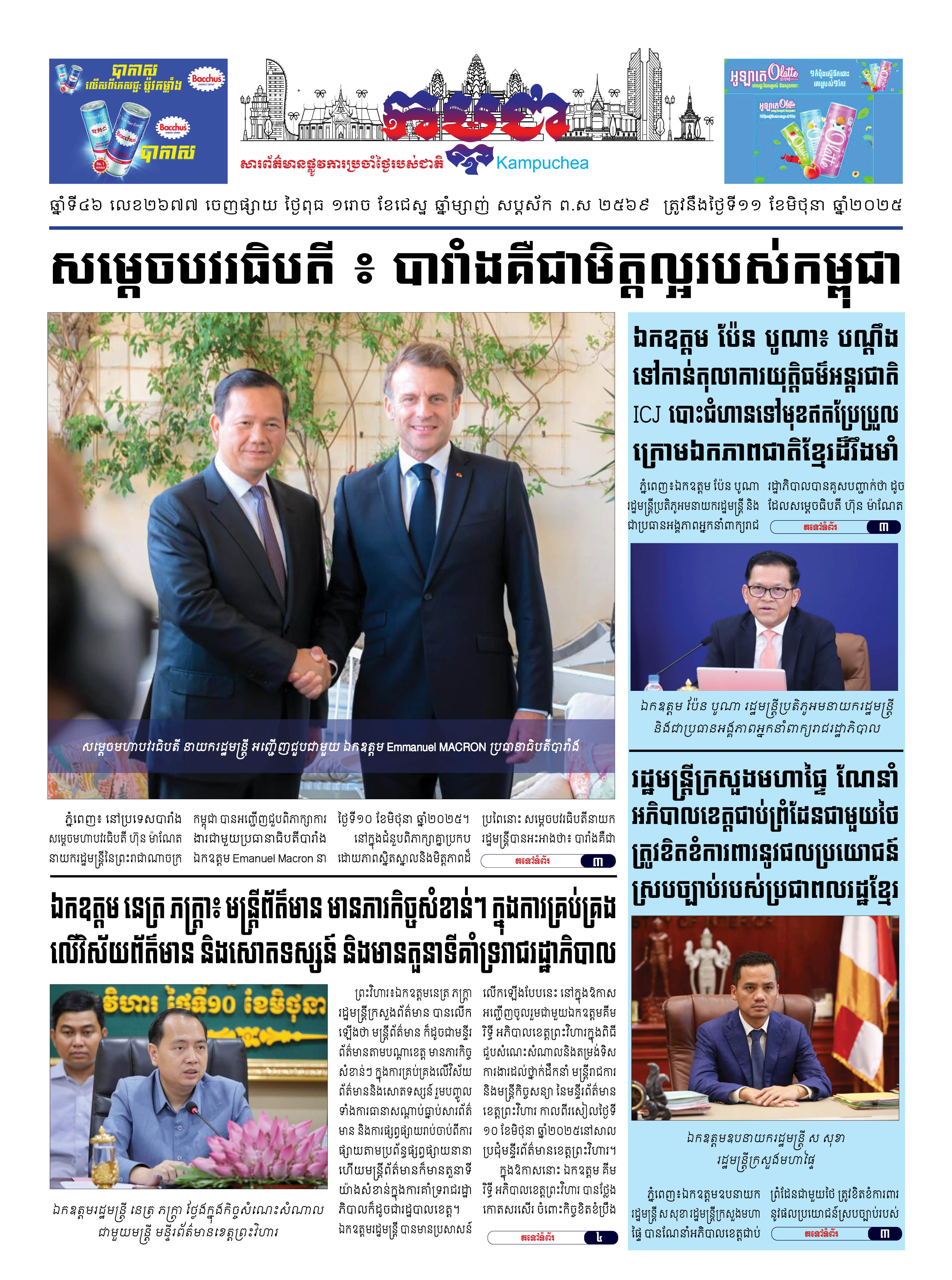 កាសែតកម្ពុជាលេខ២៦៧៧ ចេញផ្សាយថ្ងៃពុធ ទី១១ ខែមិថុនា ឆ្នាំ២០២៥