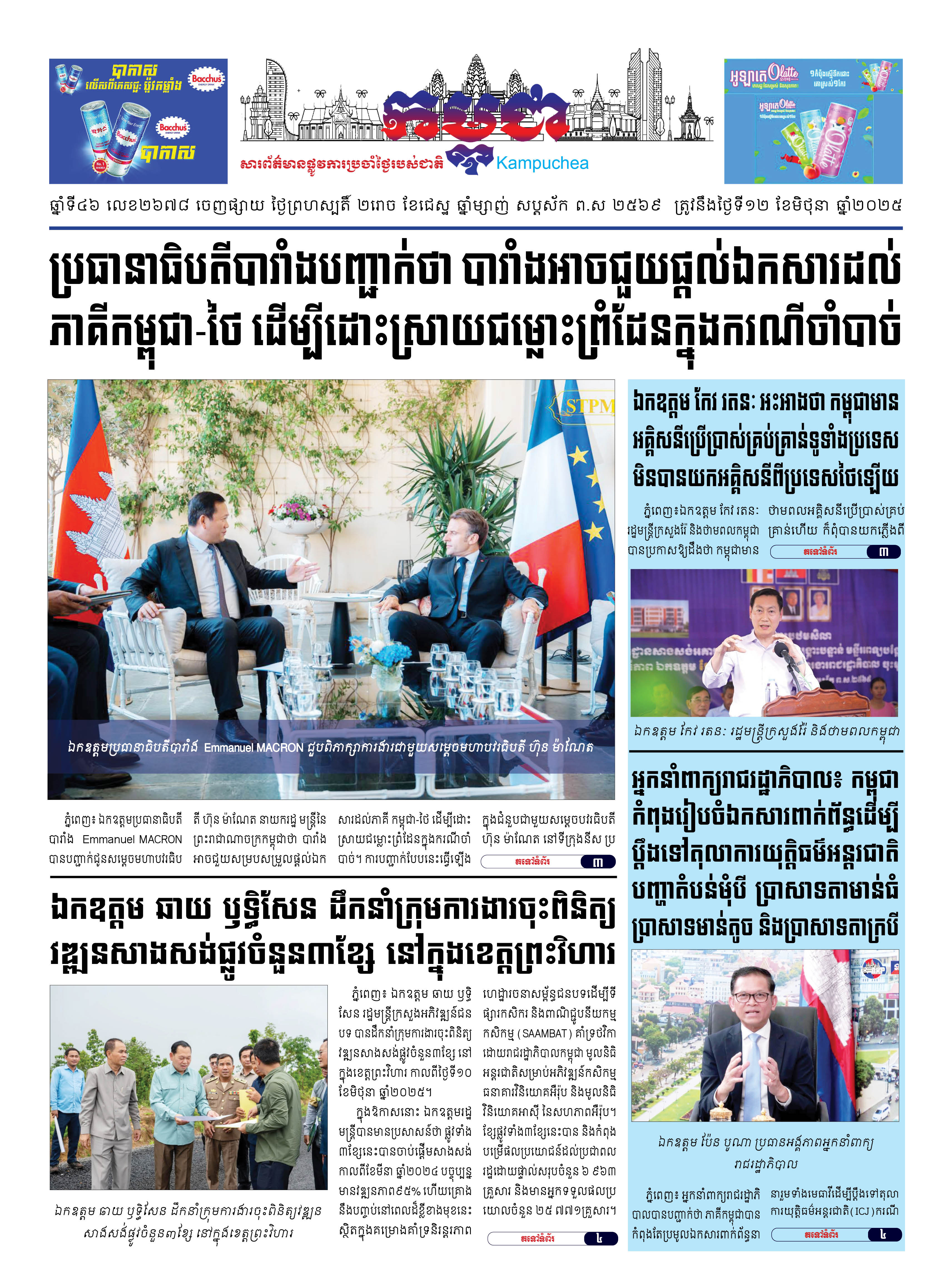 កាសែតកម្ពុជាលេខ២៦៧៨ ចេញផ្សាយថ្ងៃព្រហស្បតិ៍ ទី១២ ខែមិថុនា ឆ្នាំ២០២៥