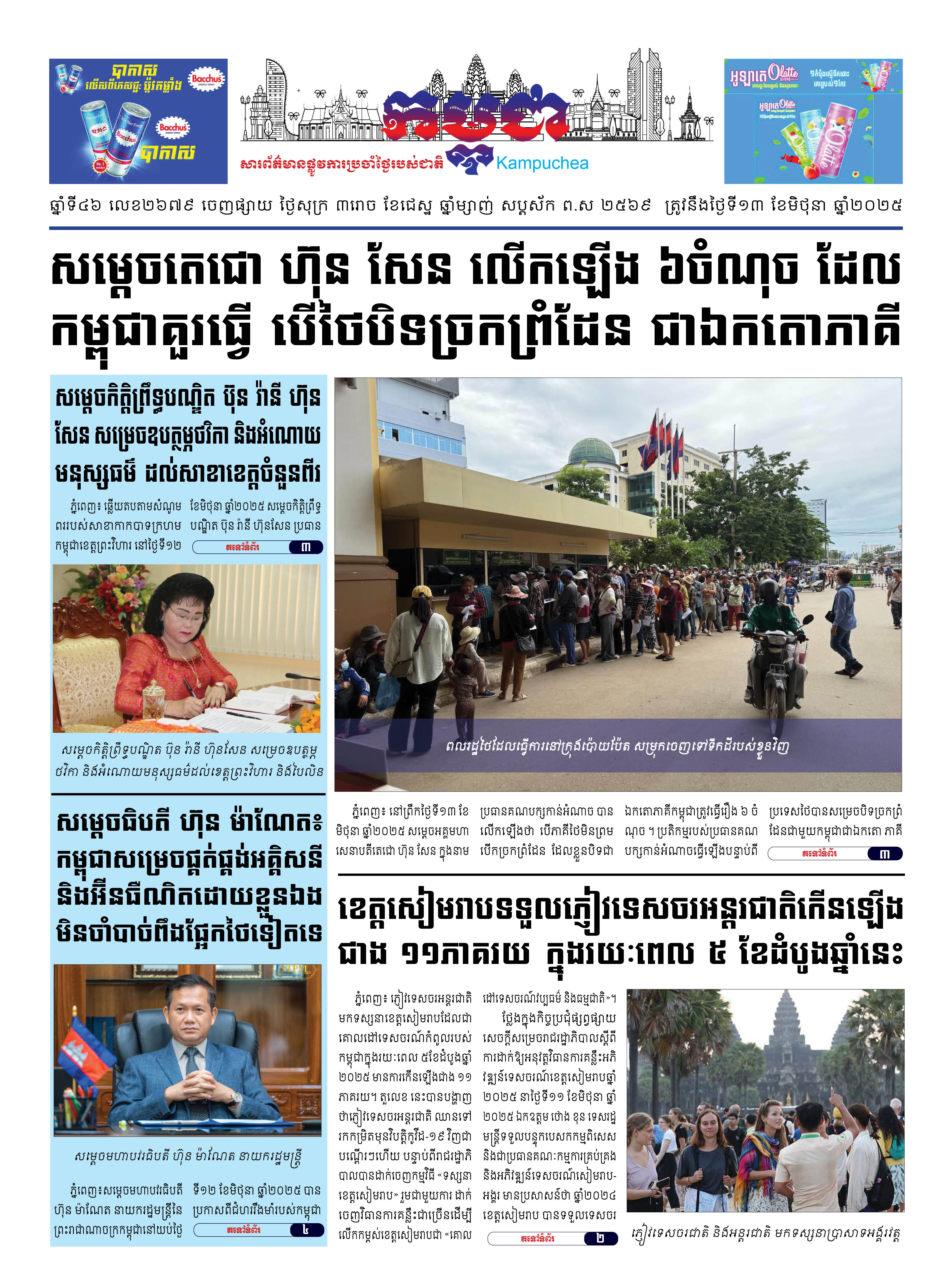 កាសែតកម្ពុជាលេខ២៦៧៩ ចេញផ្សាយថ្ងៃសុក្រ ទី១៣ ខែមិថុនា ឆ្នាំ២០២៥