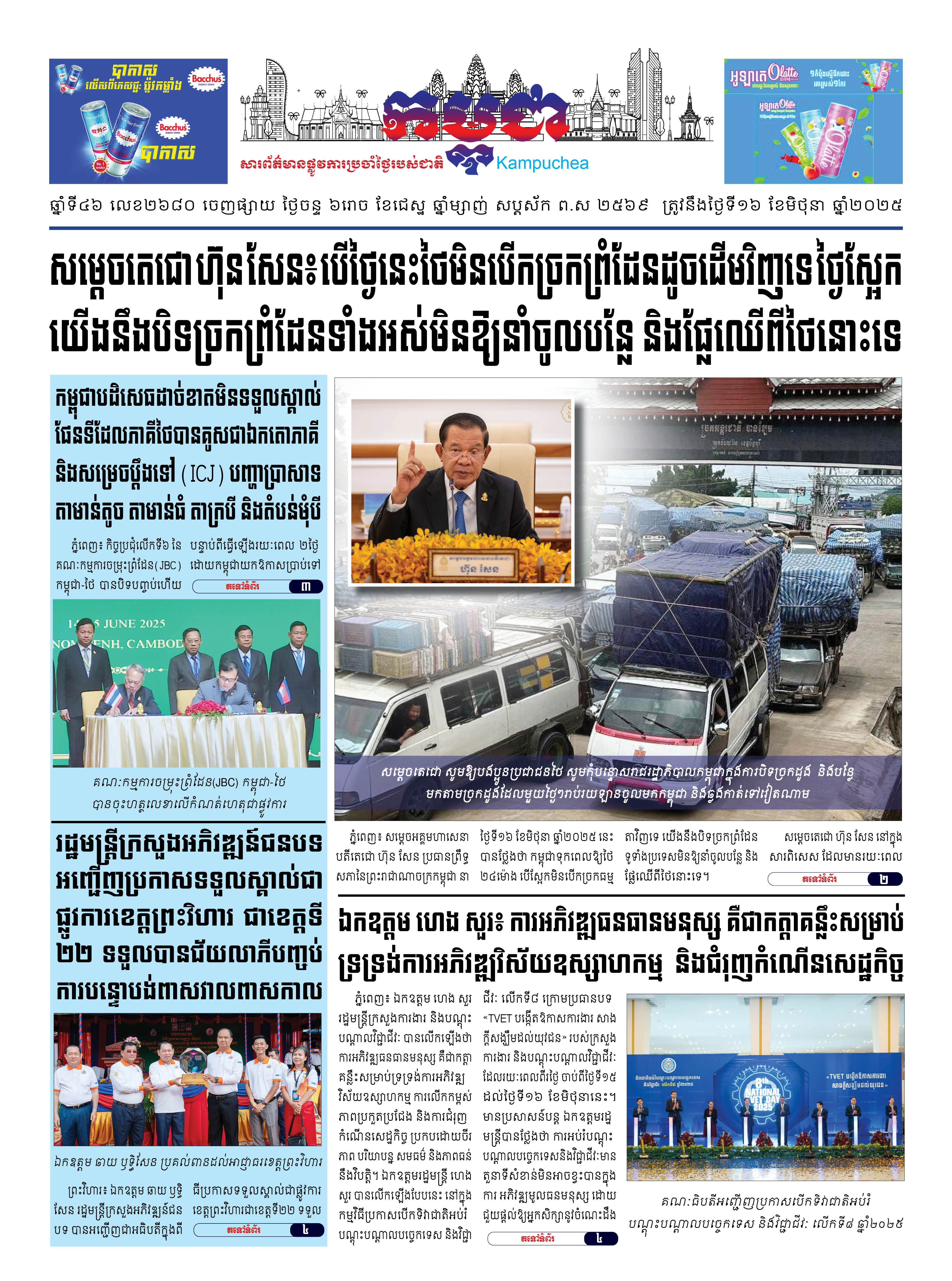 កាសែតកម្ពុជាលេខ២៦៨០ ចេញផ្សាយថ្ងៃចន្ទ ទី១៦ ខែមិថុនា ឆ្នាំ២០២៥