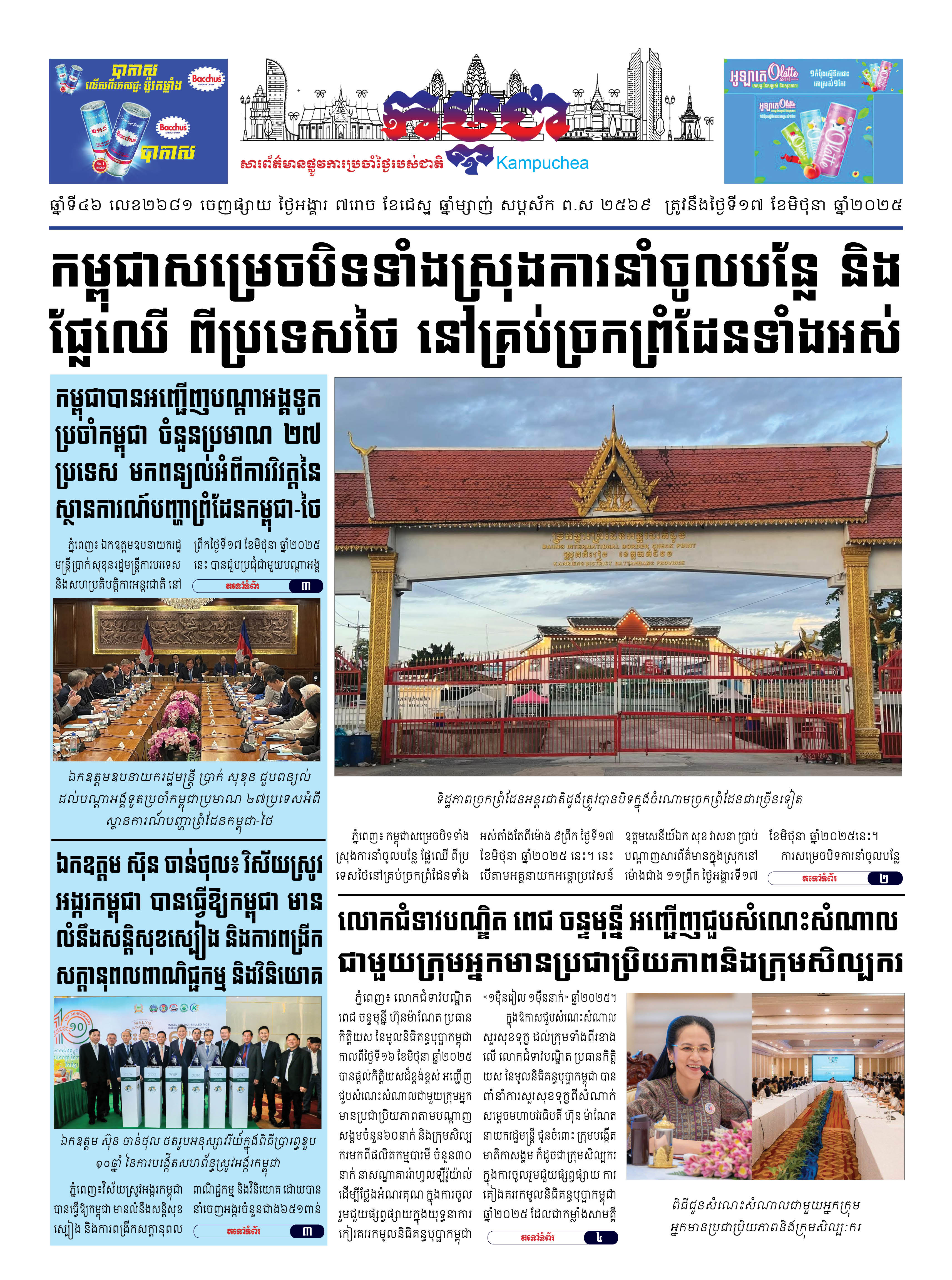 កាសែតកម្ពុជាលេខ២៦៨១ ចេញផ្សាយថ្ងៃអង្គារ ទី១៧ ខែមិថុនា ឆ្នាំ២០២៥