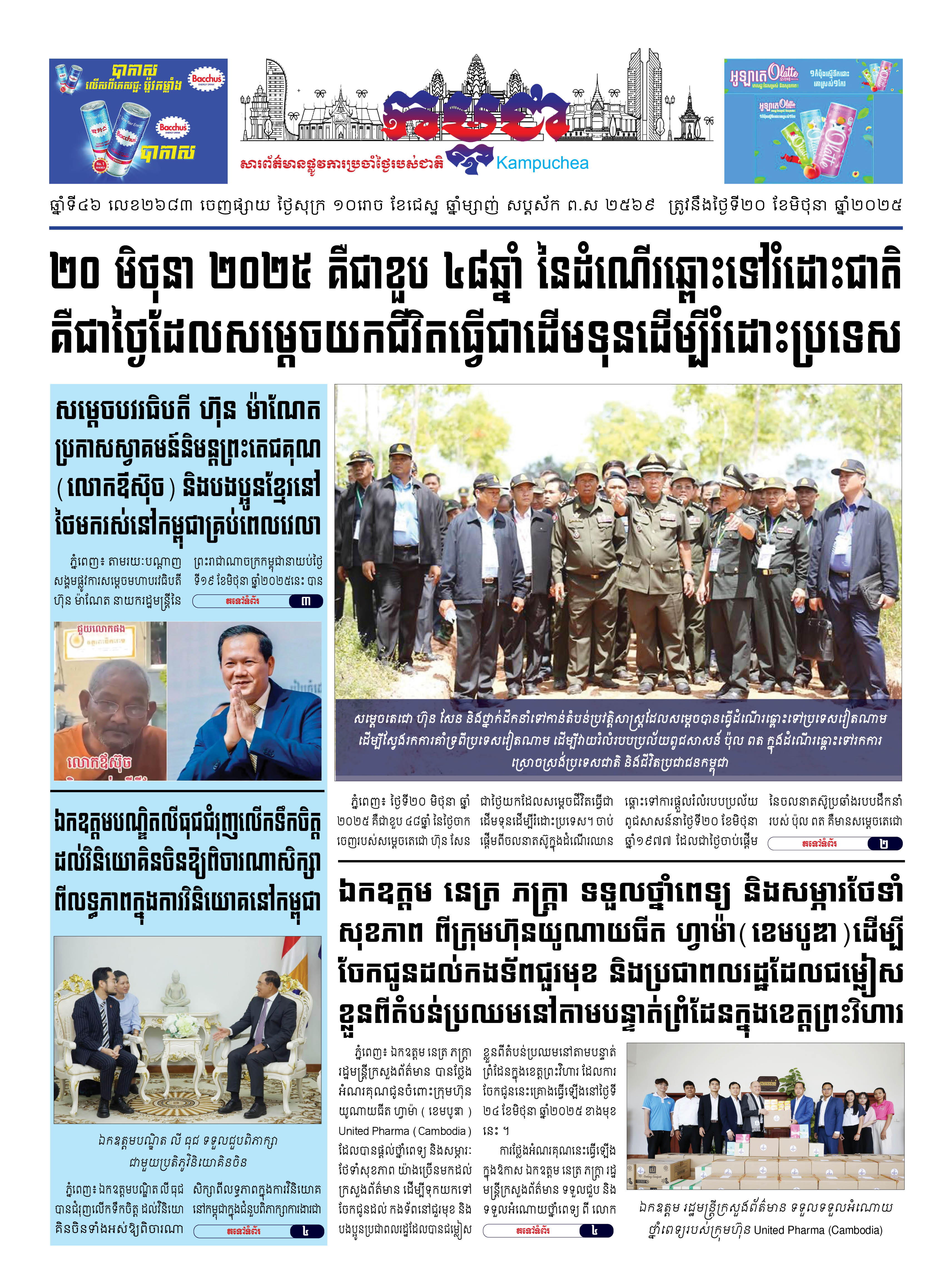 កាសែតកម្ពុជាលេខ២៦៨៣ ចេញផ្សាយថ្ងៃសុក្រ ទី២០ ខែមិថុនា ឆ្នាំ២០២៥
