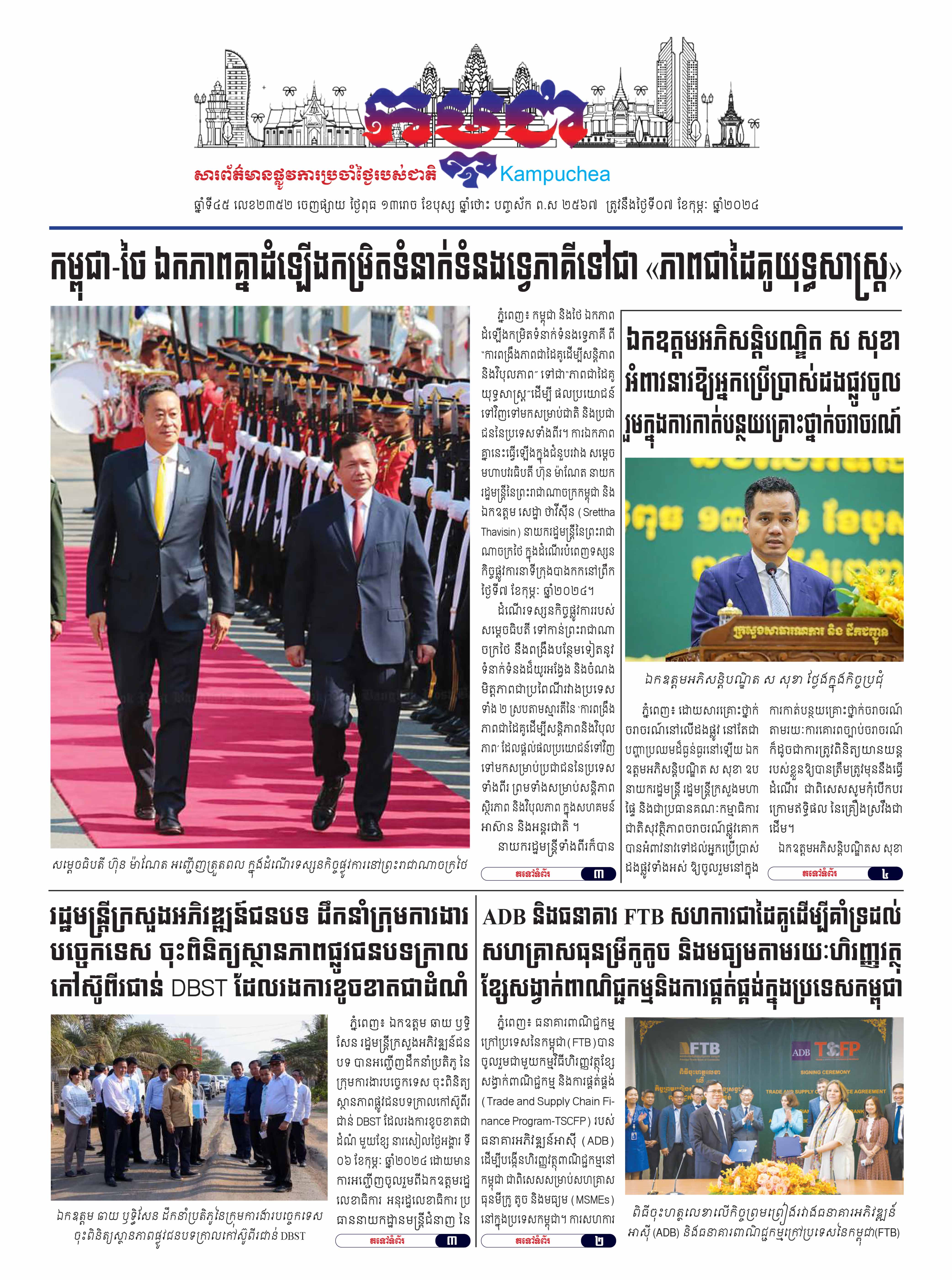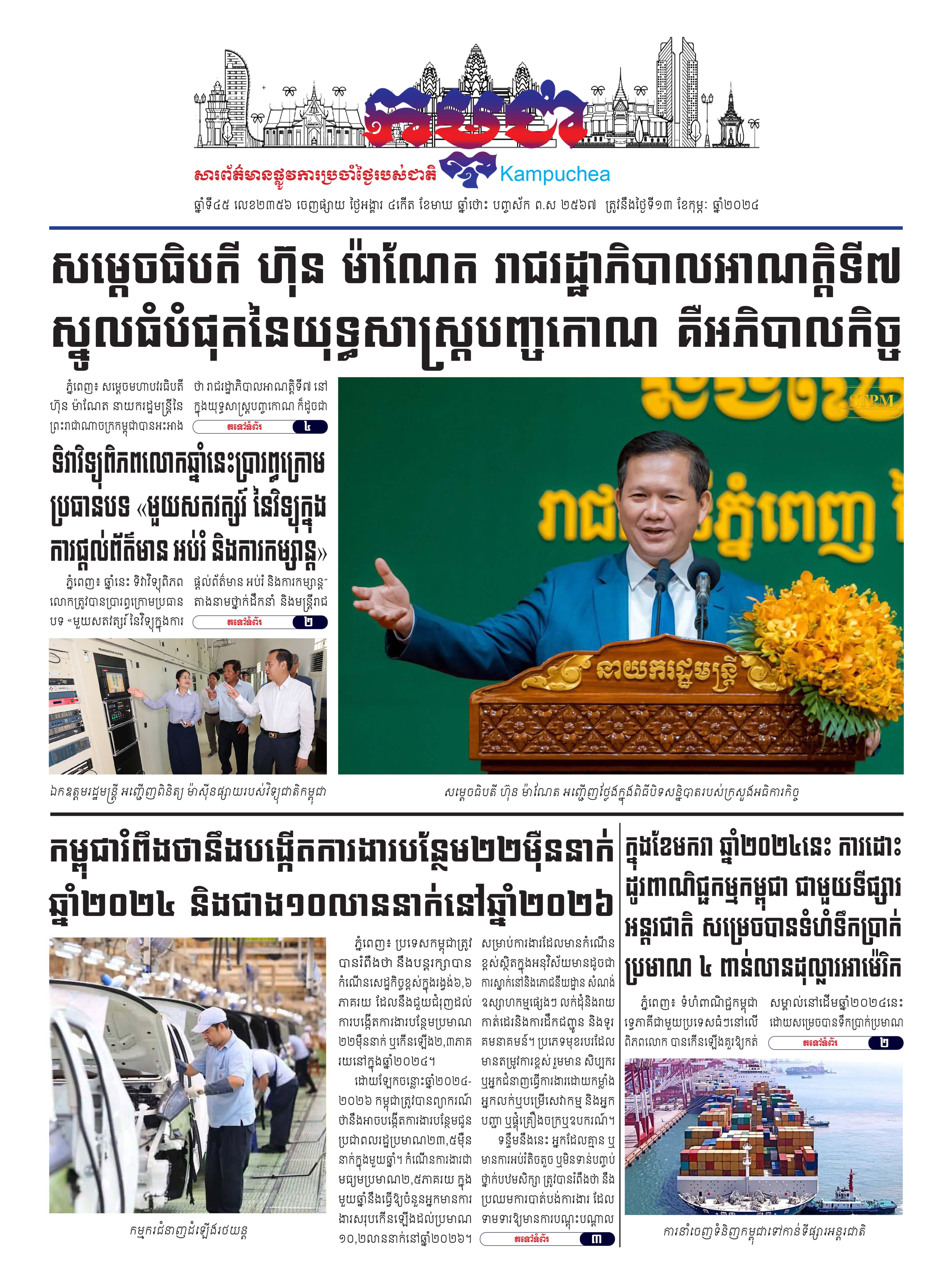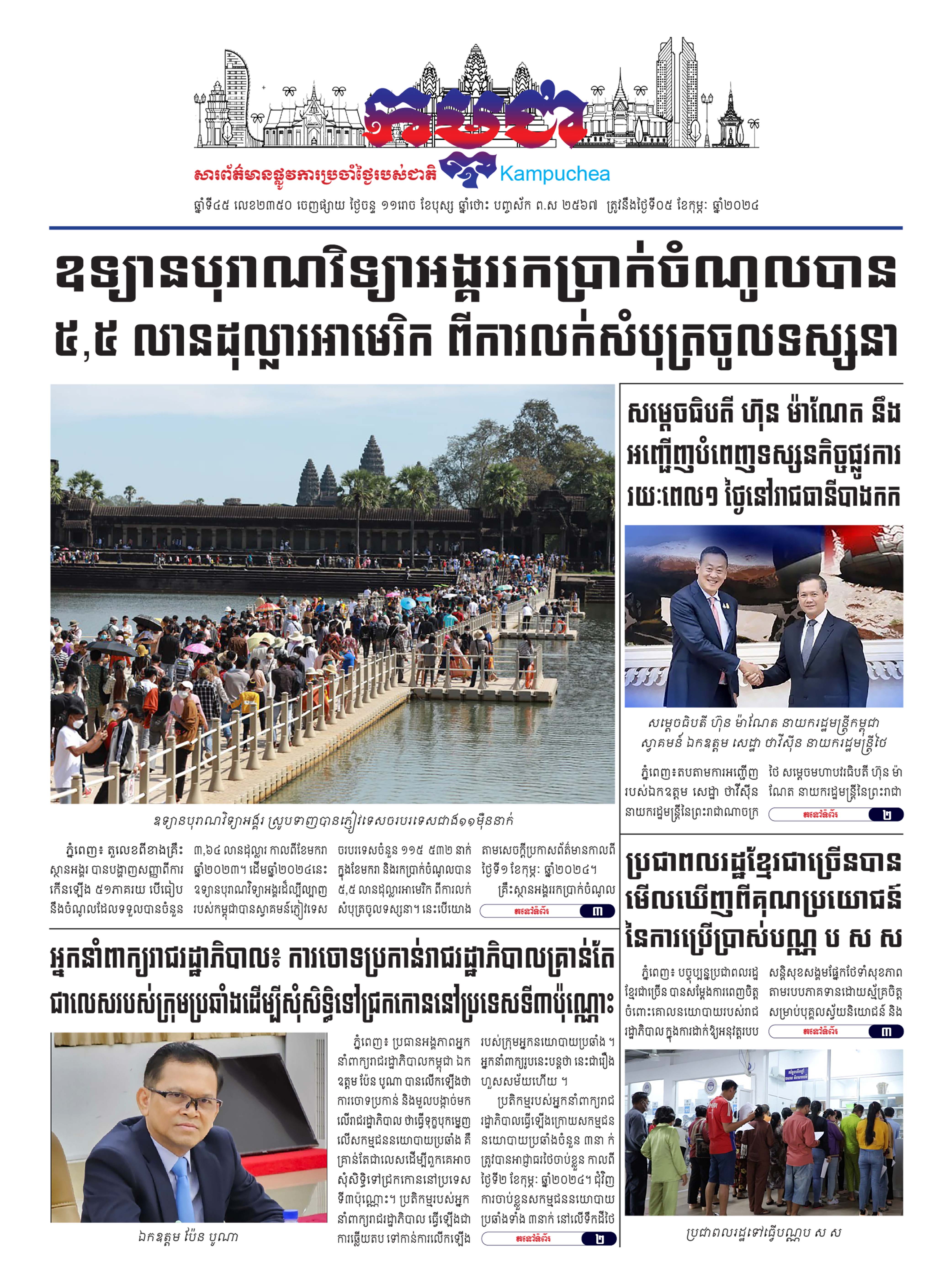 កាសែតកម្ពុជាលេខ២៣៥៣ ចេញផ្សាយថ្ងៃព្រហស្បតិ៍ ទី០៨ ខែកុម្ភៈ ឆ្នាំ២០២៤