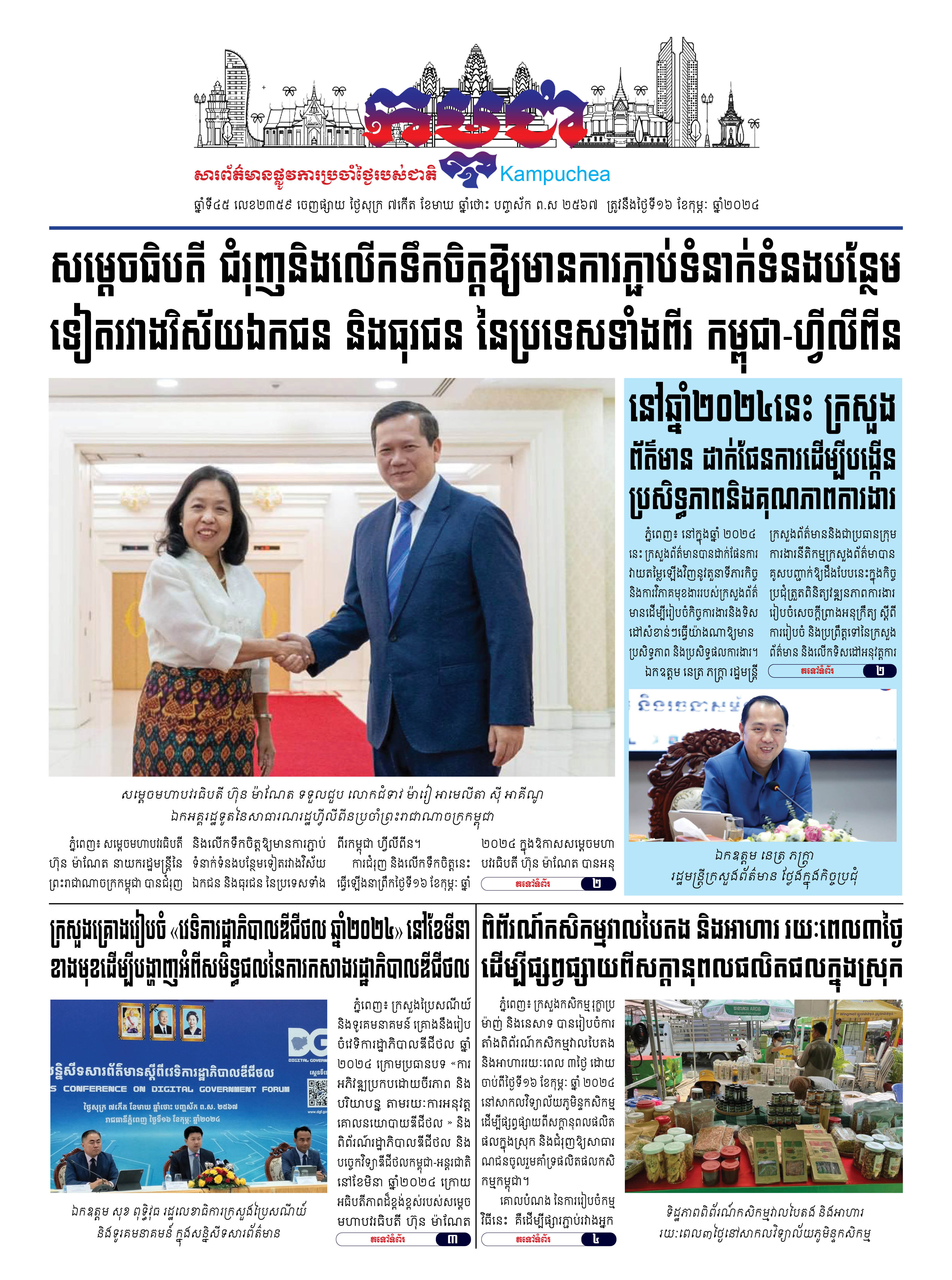 កាសែតកម្ពុជាលេខ២៣៥៥ចេញផ្សាយថ្ងៃចន្ទ ទី១២ ខែកុម្ភៈ ឆ្នាំ២០២៤