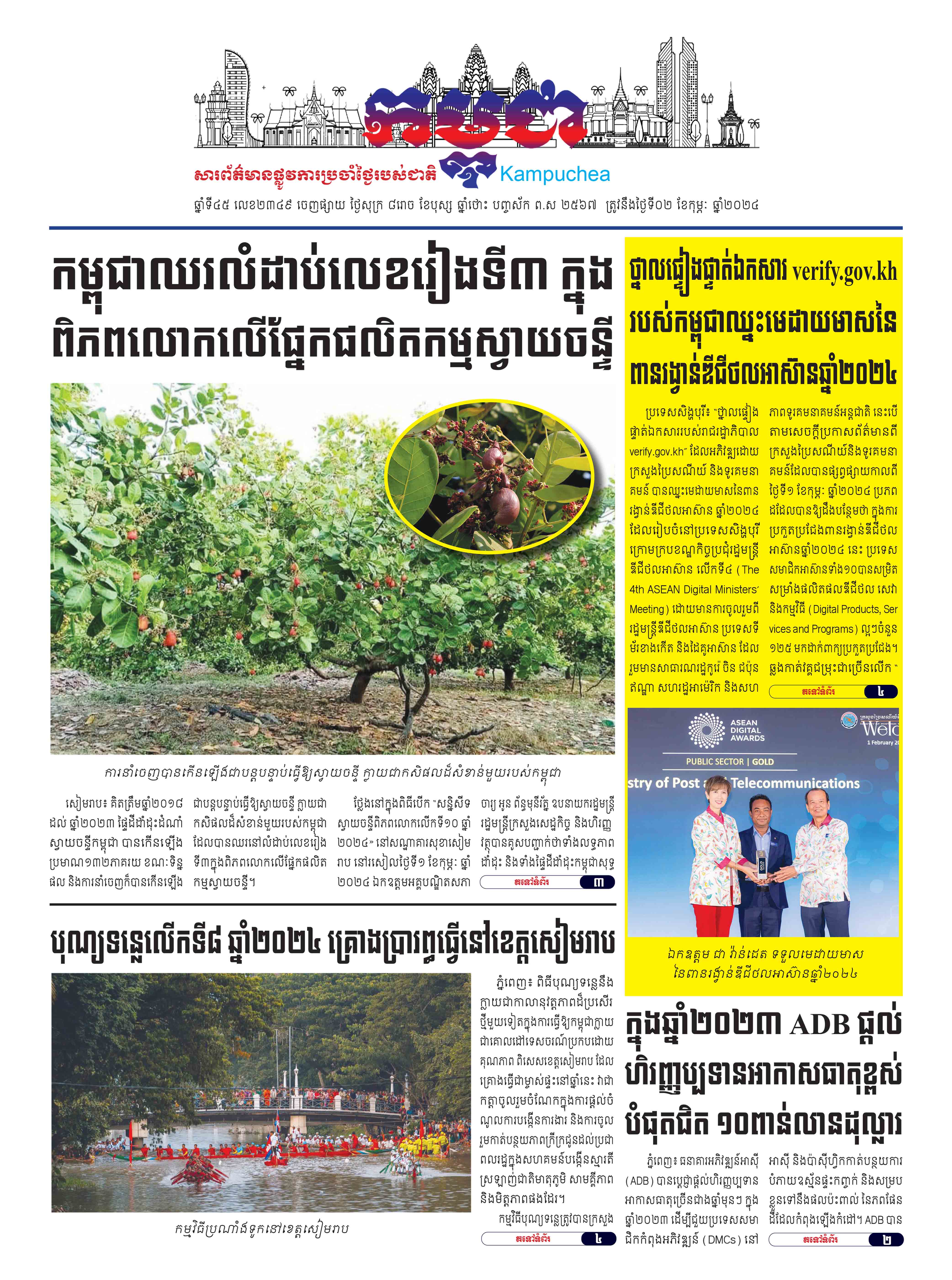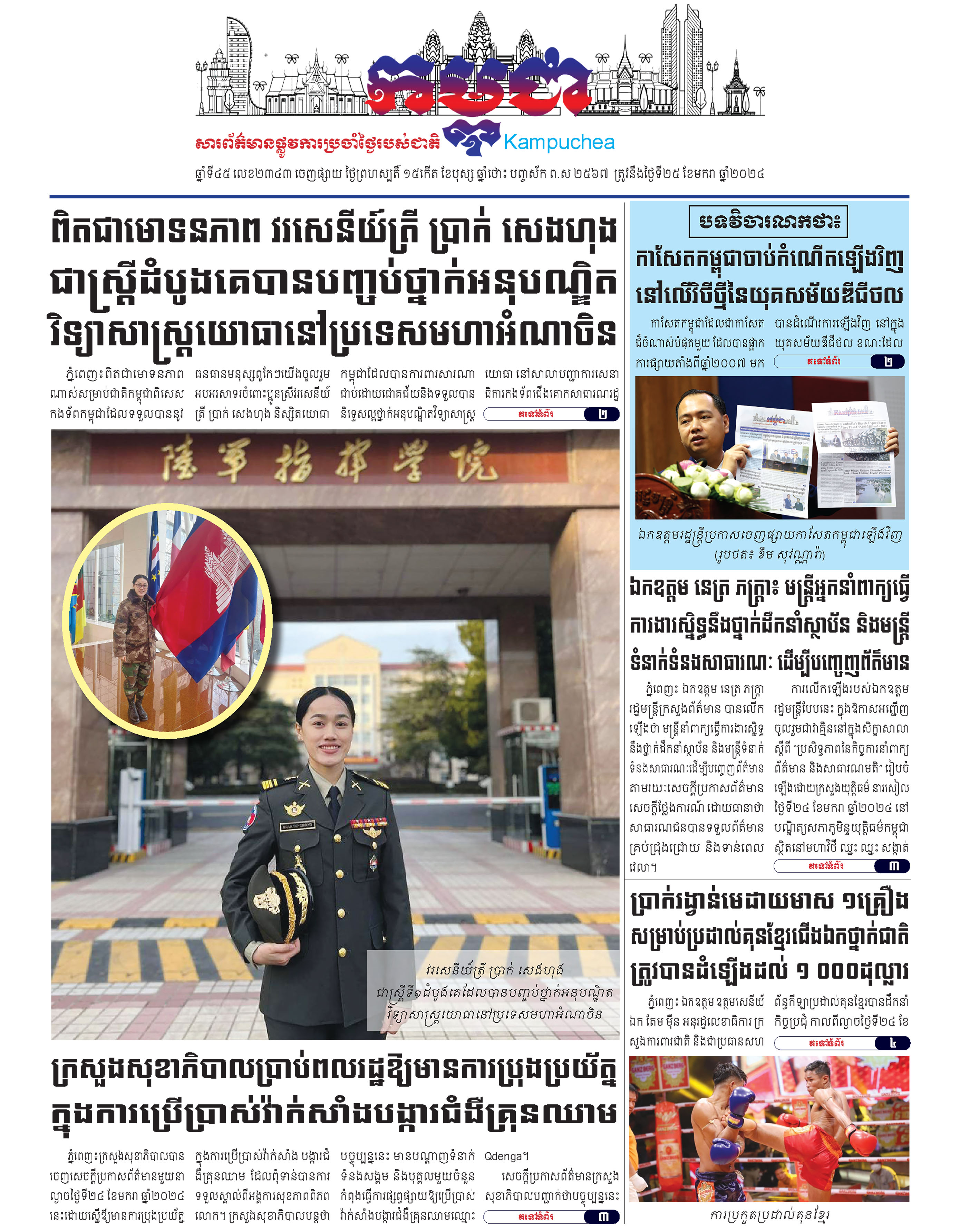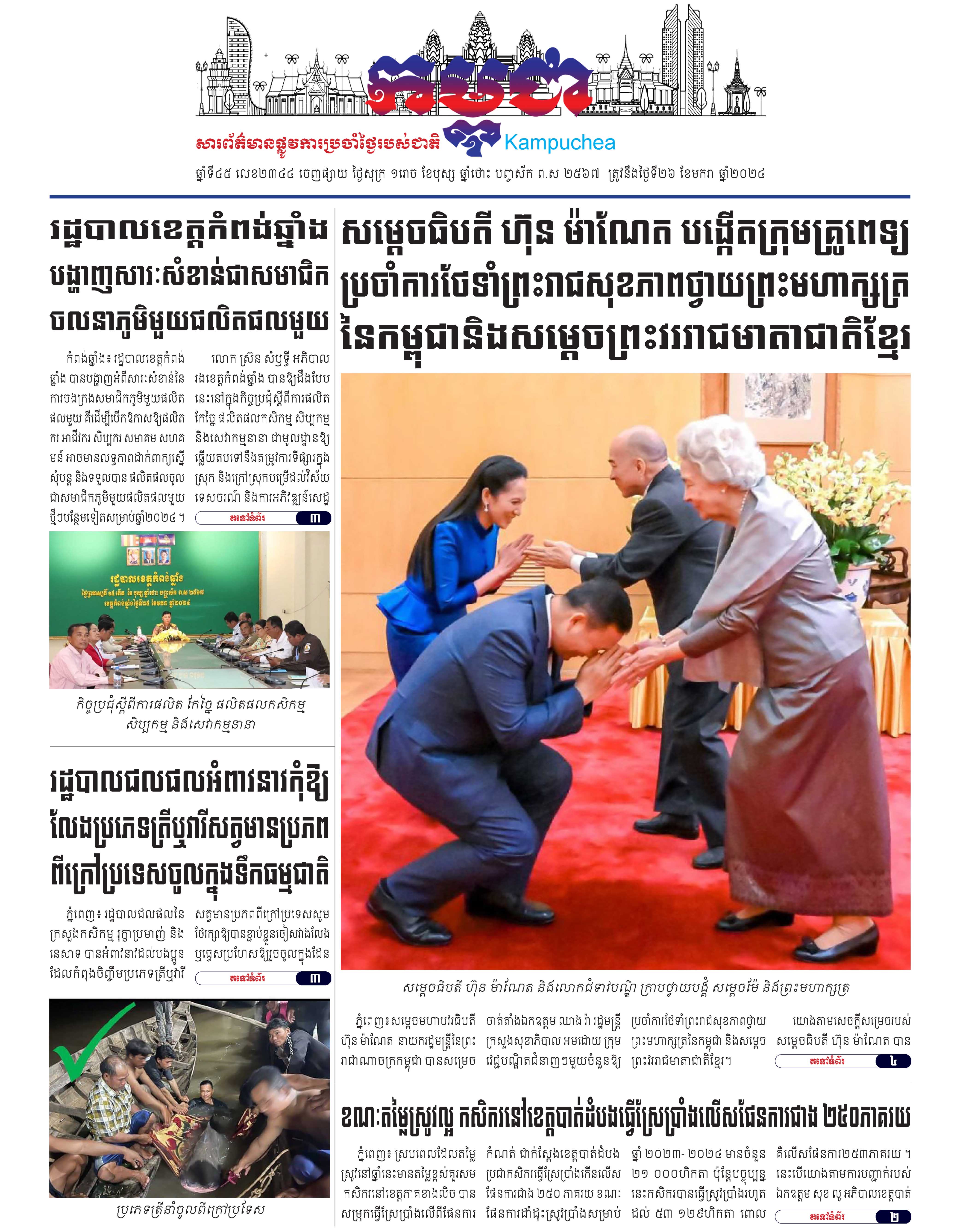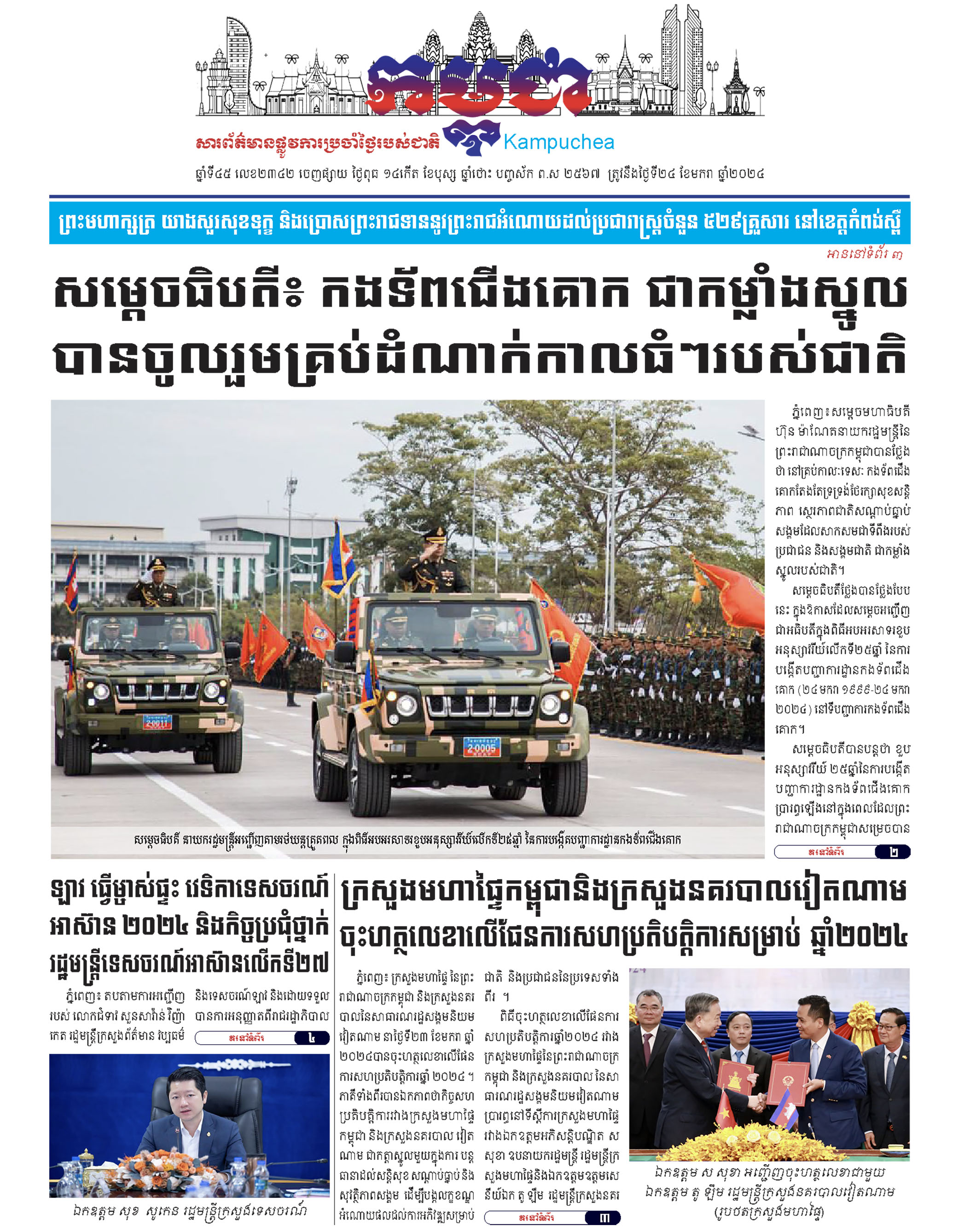 កាសែតកម្ពុជាលេខ២៣៤៣ ចេញផ្សាយថ្ងៃព្រហស្បតិ៍ ទី២៥ ខែមករា ឆ្នាំ២០២៤