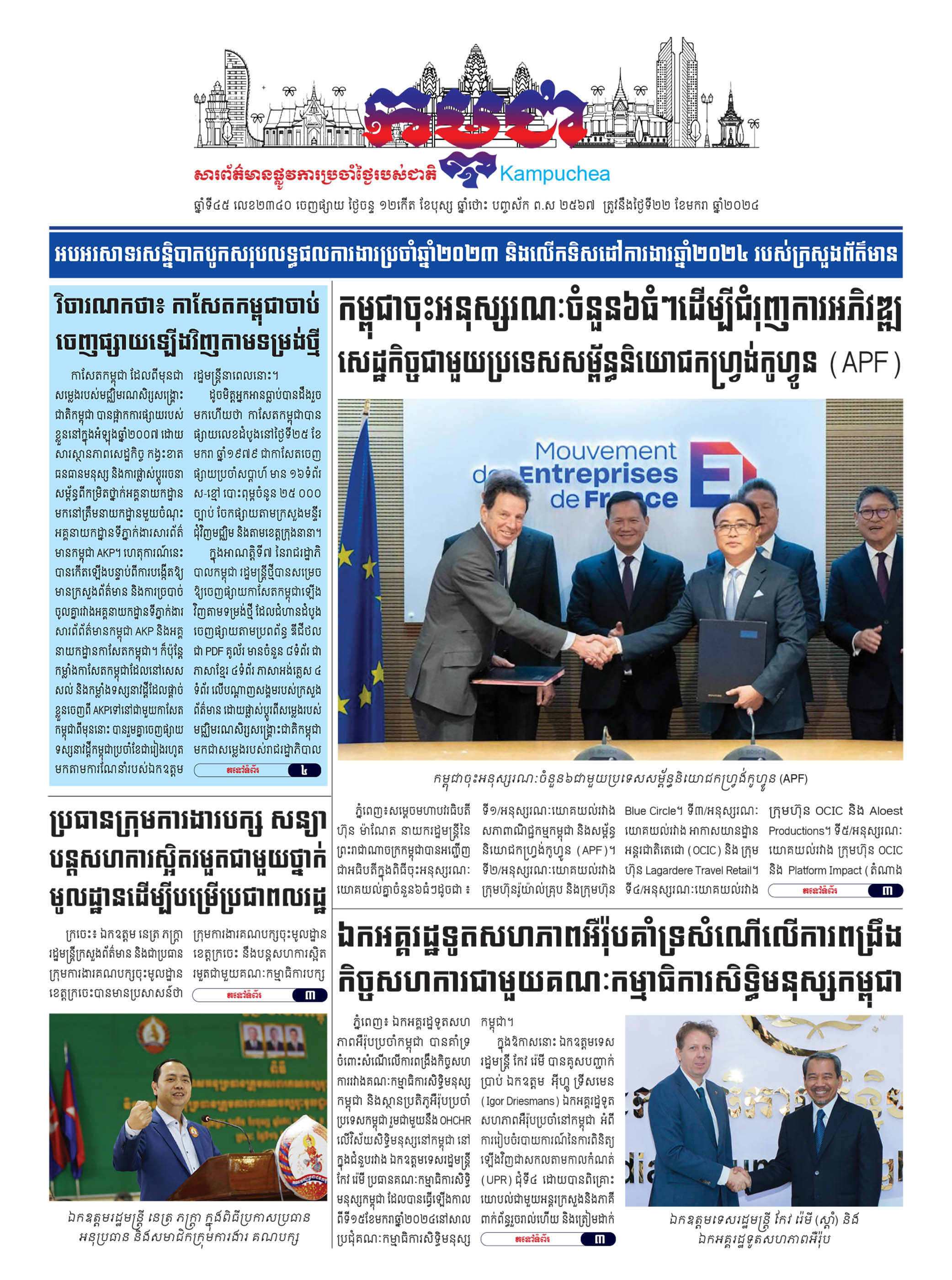 កាសែតកម្ពុជាលេខ២៣៤៤ ចេញផ្សាយថ្ងៃសុក្រ ទី២៦ ខែមករា ឆ្នាំ២០២៤