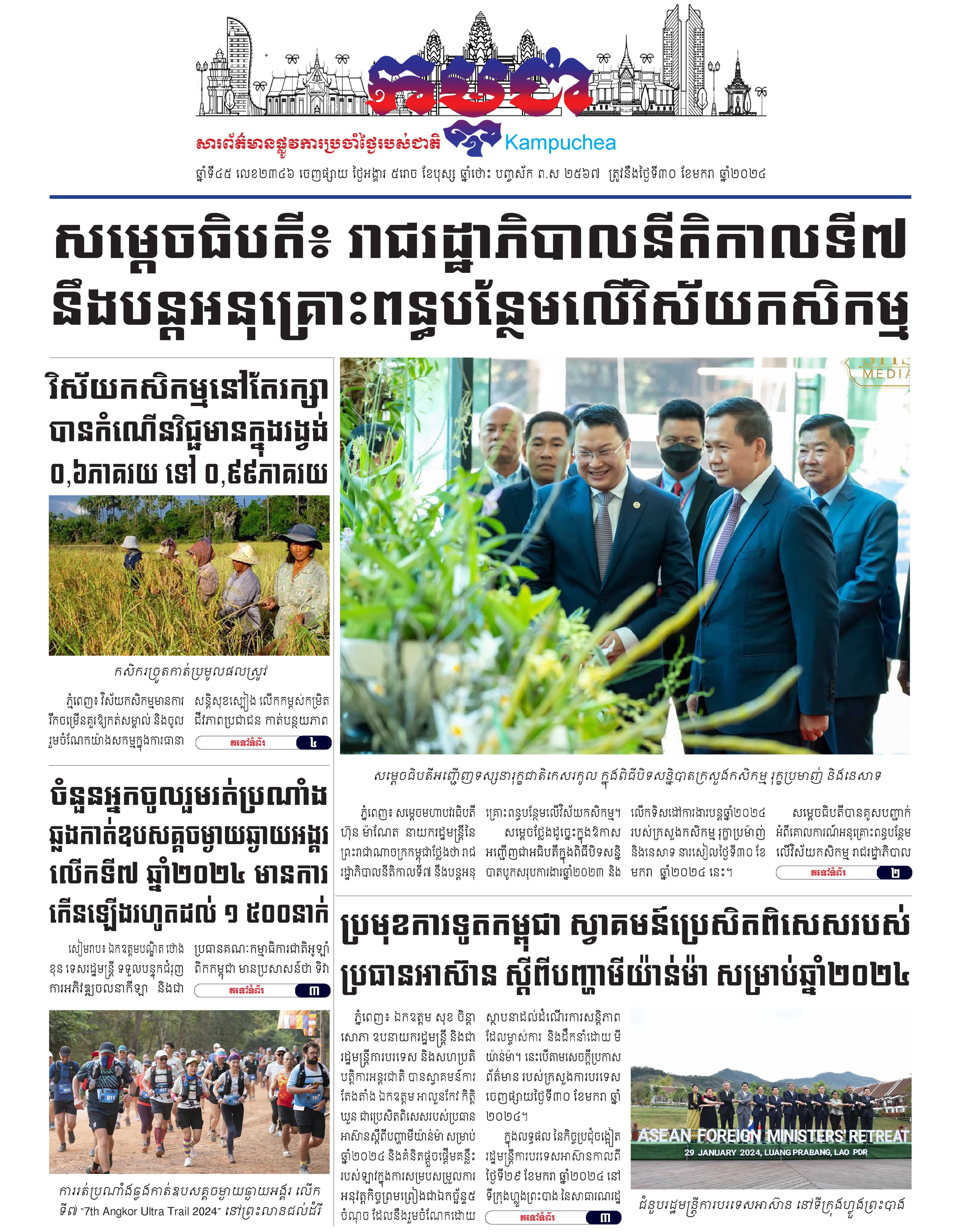 កាសែតកម្ពុជាលេខ២៣៤៦ ចេញផ្សាយថ្ងៃអង្គារ ទី៣០ ខែមករា ឆ្នាំ២០២៤