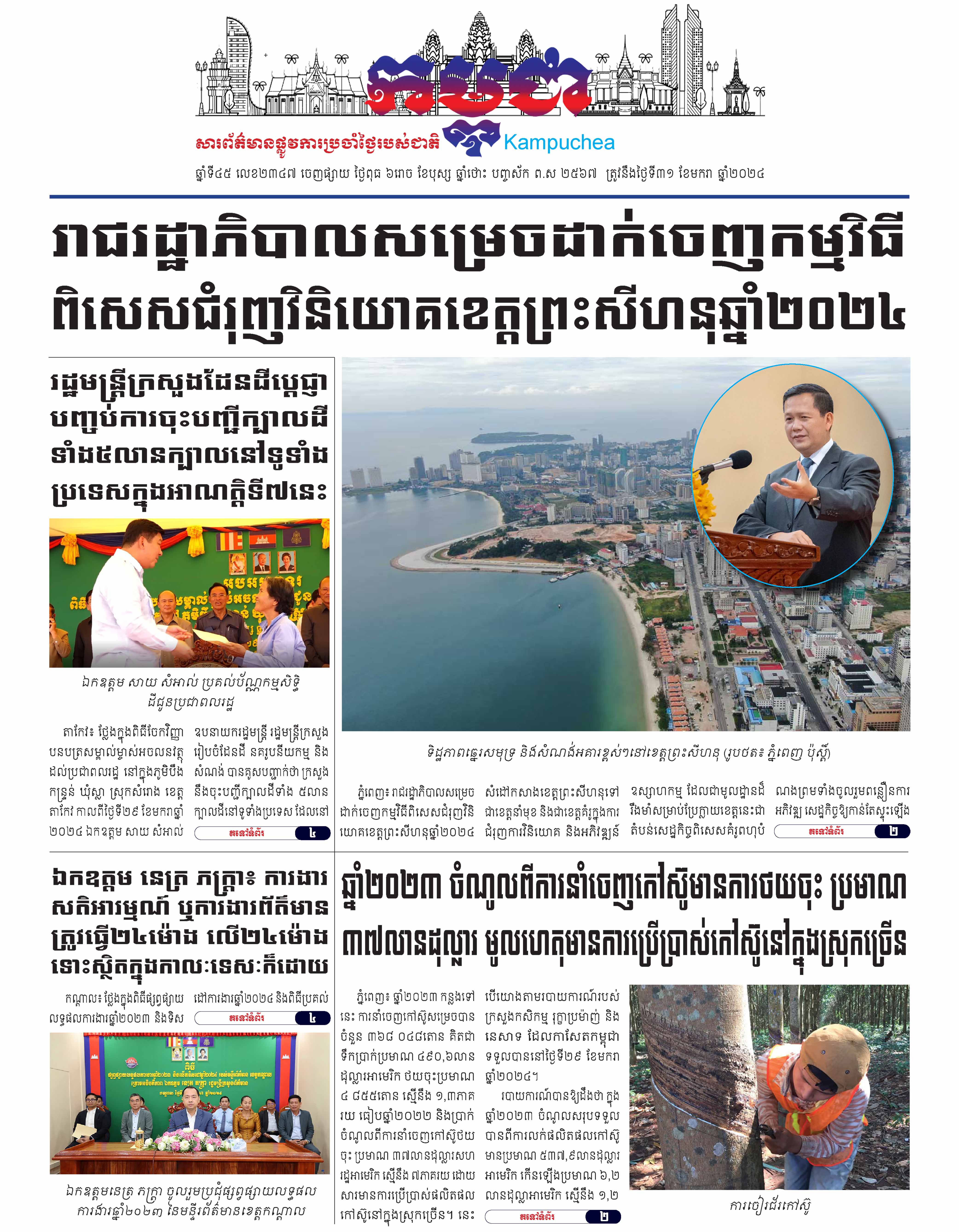 កាសែតកម្ពុជាលេខ២៣៤២ ចេញផ្សាយថ្ងៃពុធ ទី២៤ ខែមករា ឆ្នាំ២០២៤