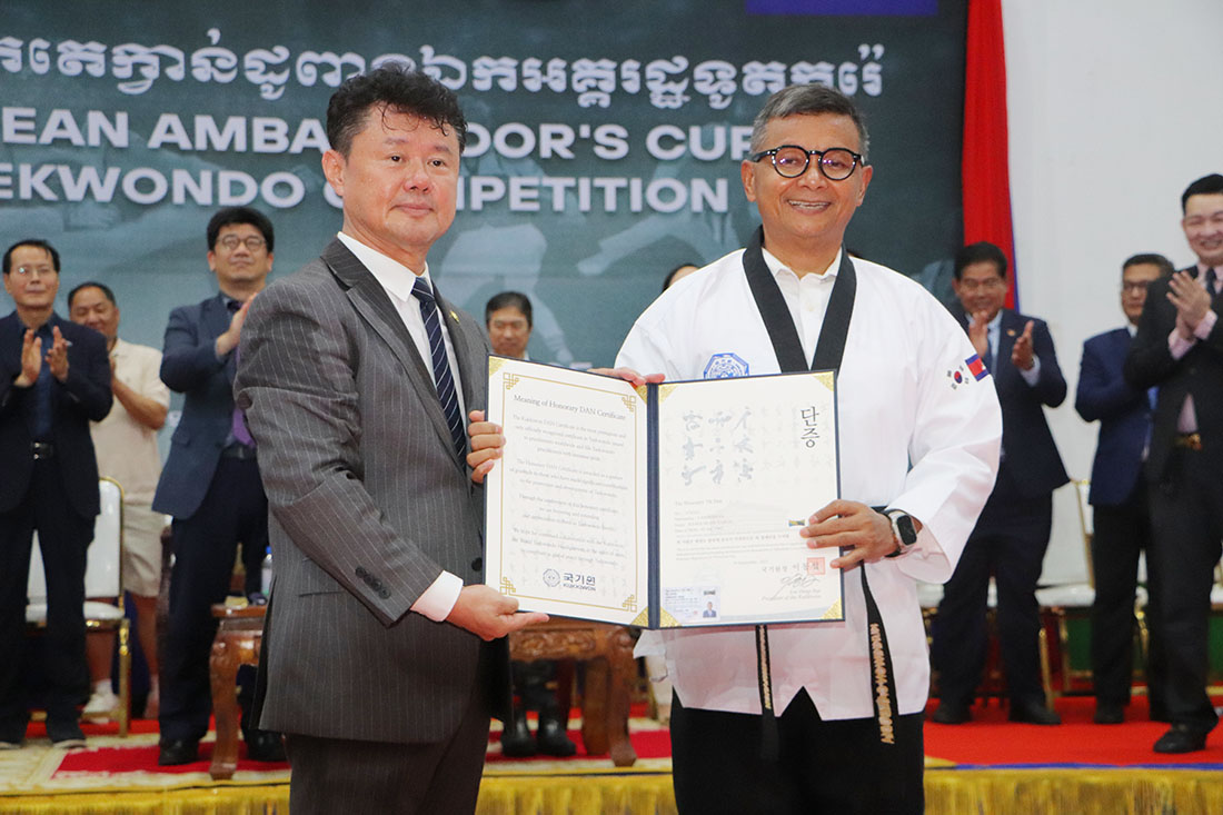 AKP ភ្នំពេញ ថ្ងៃទី១៣ ខែកញ្ញា ឆ្នាំ២០២៥--ការប្រកួតតេក្វាន់ដូពានរង្វាន់ឯកអគ្គរដ្ឋទូតសាធារណរដ្ឋកូរ៉េ ឆ្នាំ២០២៥ (KOREAN AMBASSADOR’S CUP 2025) បានធ្វើឡើងដើម្បីវាស់ស្ទង់កម្រិតបច្ចេកទេស និងសមត្ថភាព ក្នុងការត្រៀមជ្រើសរើសប្រមូលផ្តុំហ្វឹកហាត់ជាមួយក្រុមជម្រើសជាតិគោលដៅឆ្ពោះទៅការប្រកួតកីឡាយុវជនអាស៊ី (Asian Yout...