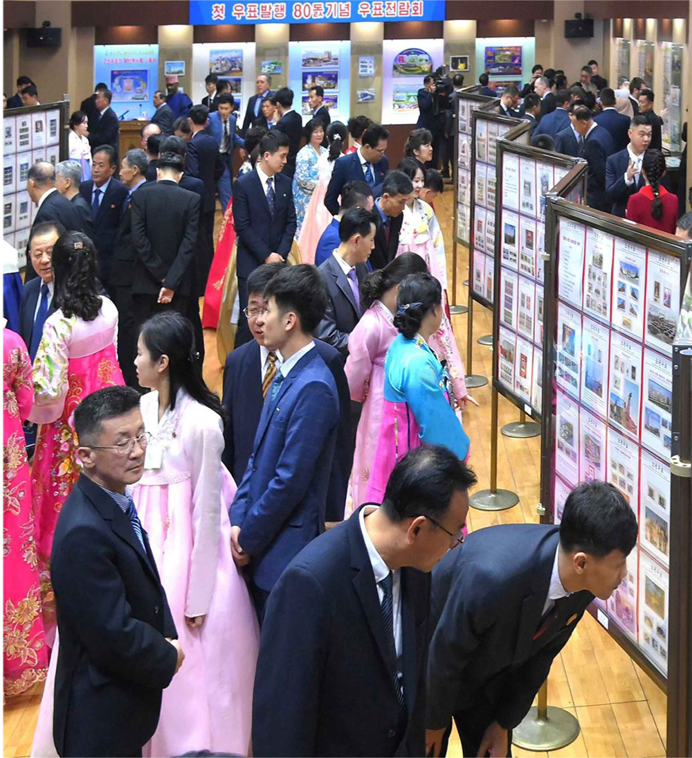 AKP ភ្នំពេញ ថ្ងៃទី៣០ ខែមីនា ឆ្នាំ២០២៦--អ្នកប្រមូលតែម និងមនុស្សជាច្រើននាក់ទៀតកំពុងមើលការតាំងពិព័រណ៍នៅក្នុងព្រឹត្តិការណ៍មួយដែលប្រារព្ធឡើងដើម្បីរំលឹកខួបលើកទី 80 នៃការចេញតែមដំបូងគេនៅកូរ៉េខាងជើង នៅថ្ងៃទី 12 ខែមីនា ឆ្នាំ 1946។ ប្រភព៖ ស្ថានទូតសាធារណរដ្ឋប្រជាមានិតប្រជាធិបតេយ្យកូរ៉េ ប្រចាំព្រះ...