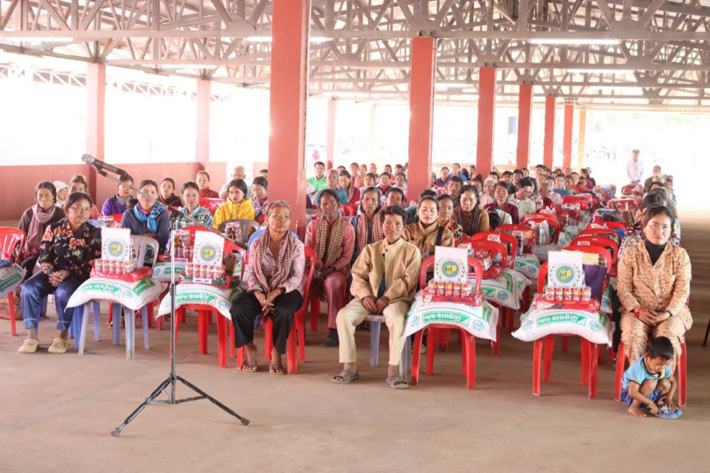 សូមបញ្ជាក់ថា សម្រាប់អំណោយដែលចែកជូនបងប្អូនប្រជាពលរដ្ឋទាំង២០០គ្រួសារ ដោយក្នុង១គ្រួសារទទួលបាននូវអង្ករ ត្រីខ ភួយ ទឹកស៊ីអ៊ីវ និងឃីត១កញ្ចក់ផងដែរ៕