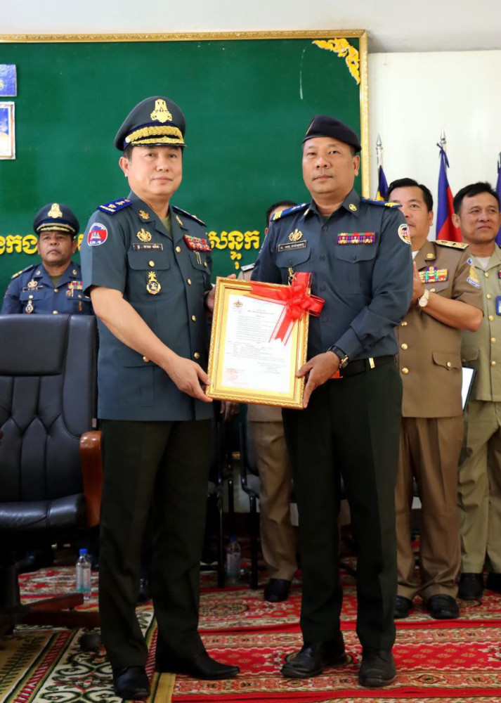 លោកឧត្តមសេនីយ៍ត្រីបានបន្តថាកងរាជអាវុធហត្ថជាមន្ត្រីនគរបាលយុត្តិធម៌ គឺជាទាហានច្បាប់ ធ្វើជាទាហានច្បាប់ ត្រូវតែគោរពច្បាប់ អនុវត្តឱ្យបានត្រឹមត្រូវតាមនីតិវិធី ទៅណាមកណាត្រូវសុំការអនុញ្ញាតច្បាប់ឱ្យបានត្រឹមត្រូវតាមបែបបទរដ្ឋបាលដើម្បីតម្រង់ទិសក្នុងការដឹកនាំ។ ឯកឧត្តមនាយឧត្តមសេនីយ៍មេបញ្ជាការ បានដាក់ចេញនូវទិសស្លោកជាបន្តបន្ទាប់ជួយគិត ជួយធ្វើ រួមគ្នាទទួលខុសត្រូវនិងប្រទេសជាតិត្រូវតែការពារ ប្រជាត្រូវតែបម្រើច្បាប់ត្រូវតែគោរព បទល្មើសត្រូវតែបង្ក្រាប។ ត្រូវយកចិត្តទុកដាក់ថែទាំមធ្យោបាយសម្ភារគ្រឿងបំពាក់អាវុធគ្រាប់រំសេវឱ្យបានត្រឹមត្រូវ ការពារវត្ថុឆាបឆេះរៀបចំឱ្យមានប្រព័ន្ធសុវត្ថិភាព ចាត់កម្លាំងយាមកាមឱ្យបានហ្មត់ចត់។ ជួសជុលលាបពណ៌អគារ កន្លែងធ្វើការឱ្យបានស្អាត មានសោភ័ណភាព មានអនាម័យបើមានលទ្ធភាពត្រូវសាងសង់អគារថ្មីបន្ថែម។