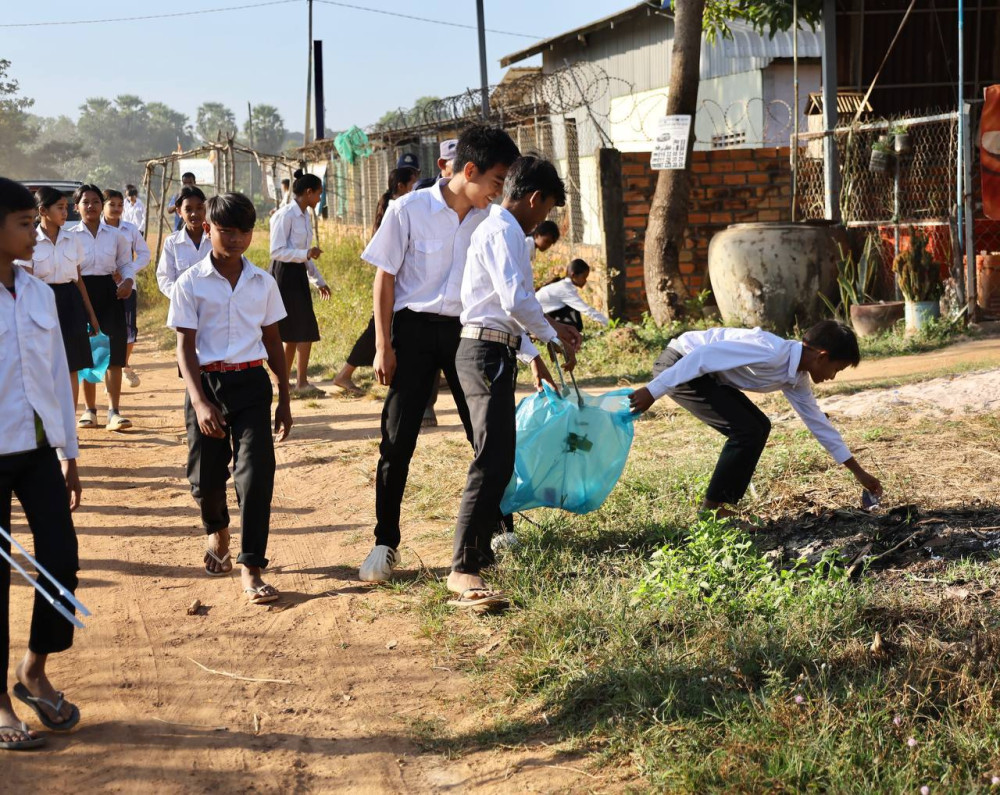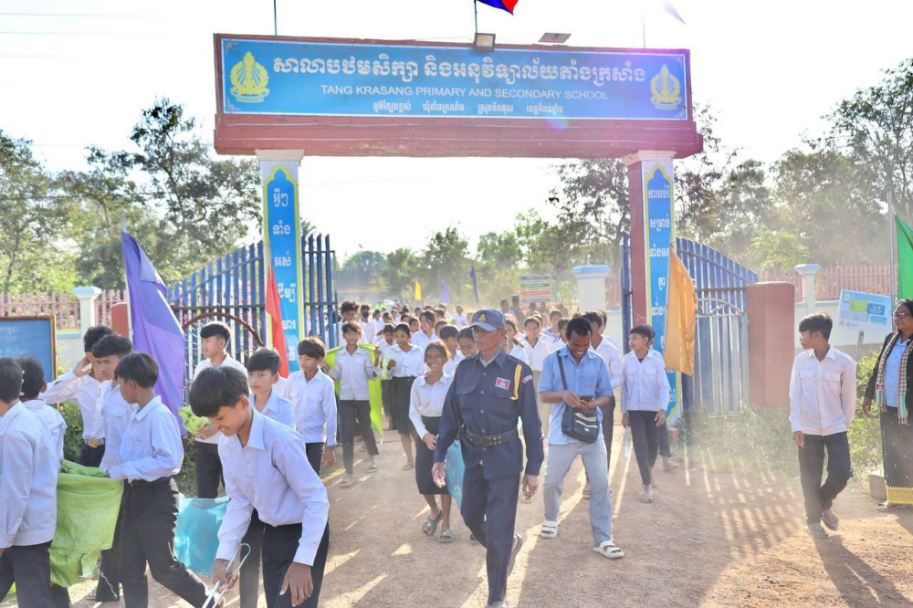 AKP កំពង់ឆ្នាំង ថ្ងៃទី០៩ ខែមករា ឆ្នាំ២០២៥ -- ឯកឧត្តម ខ្វៃ អាទិត្យា អនុរដ្ឋលេខាធិការក្រសួងបរិស្ថាន នៅថ្ងៃទី០៩ ខែមករា ឆ្នាំ២០២៥ បានអញ្ជើញចូលរួម ជាមួយថ្នាក់ដឹកនាំ និងមន្រ្តី នាយកដ្ឋានគ្រប់គ្រងសំណល់គ្រោះថ្នាក់ មន្ទីរបរិស្ថានខេត្តកំពង់ឆ្នាំង សហការជាមួយរដ្ឋបាលស្រុកទឹកផុស អាជ្ញាធរមូលដ្ឋាន ឃុំតាំងក្រសាំង លោកគ្រូ អ្នកគ្រូ សិស្សានុសិស្ស នៃអនុវិទ្យាល័យតាំងក្រសាំង និងប្រជាពលរដ្ឋ នៅក្នុងមូលដ្ឋាន ជាច្រើននាក់ បានចុះអនុវត្តយុទ្ធនាការ «កម្ពុជាស្អាត ខ្មែរធ្វើបាន» និងយុទ្ធនាការ «ផ្លូវស្អាតគ្មានសំរាមប្លាស្ទិក» នៅក្នុងមូលដ្ឋានឃុំតាំងក្រសាំង ស្រុកទឹកផុស ខេត្តកំពង់ឆ្នាំង។