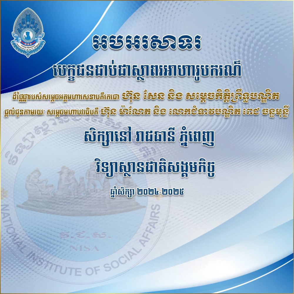 AKP ភ្នំពេញ ថ្ងៃទី១០ ខែមករា ឆ្នាំ២០២៥–សម្ដេចមហាបវរធិបតី ហ៊ុន ម៉ាណែត នាយករដ្ឋមន្ត្រីនៃព្រះរាជាណាចក្រកម្ពុជា អបអរសាទរបេក្ខជនជាប់ស្ថាពរទទួលបានអាហារូបករណ៍ សម្តេចអគ្គមហាសេនាបតីតេជោ ហ៊ុន សែន និងសម្តេចកិត្តិព្រឹទ្ធបណ្ឌិត ផ្តល់ជូនតាមរយៈ សម្តេចមហាបវរធិបតី ហ៊ុន ម៉ាណែត និងលោកជំទាវបណ្ឌិត ពេជ ចន្ទមុន្នី ថ្នាក់បរិញ្ញាបត្រ សិក្សានៅវិទ្យាស្ថានជាតិសង្គមកិច្ច សម្រាប់ឆ្នាំ ២០២៤-២០២៥។
