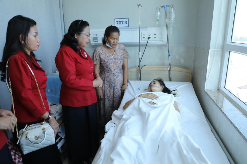 សម្តេចកិត្តិព្រឹទ្ធបណ្ឌិត ប៊ុន រ៉ានី ហ៊ុនសែន ចាត់មន្ត្រីចុះសួរសុខទុក្ខនារីរងគ្រោះថ្នាក់ចរាចរណ៍នៅលើផ្លូវ៦០ម៉ែត្រ ដល់មន្ទីរពេទ្យណាមសៃហ្គន និងឧបត្ថម្ភថវិកាបន្ថែមទៀត