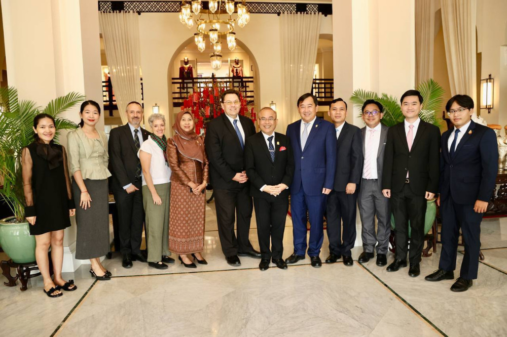AKP ភ្នំពេញ ថ្ងៃទី២ ខែកុម្ភះ ឆ្នាំ២០២៥ -- ឯកឧត្ដម សួស យ៉ារ៉ា ប្រធានគណៈកម្មការកិច្ចការបរទេស សហប្រតិបត្តិការអន្តរជាតិ និងព័ត៌មាននៃរដ្ឋសភា រួមជាមួយឯកឧត្តមបណ្ឌិត ចែម វីឌ្យ៉ា ប្រធានគណៈកម្មការកិច្ចការបរទេស សហប្រតិបត្តិការអន្តរជាតិ ឃោសនាការ និងព័ត៌មាននៃព្រឹទ្ធសភា បានអញ្ជើញជួបពិភាក្សាការងារជាមួយឯកឧត្ដម Laurent Wehrli ប្រធានគណៈកម្មាធិការគោលនយោបាយការបរទេសនៃក្រុមប្រឹក្សាជាតិនៃប្រទេសស្វីស (រដ្ឋសភា) និងតំណាងទីភ្នាក់ងារស្វីសដើម្បីការអភិវឌ្ឍ និងសហប្រតិបត្តិការ (SDC) នៅរសៀលថ្ងៃទី១ ខែកុម្ភៈ ឆ្នាំ២០២៥ នៅសណ្ឋាគារ Raffle Hotel ។