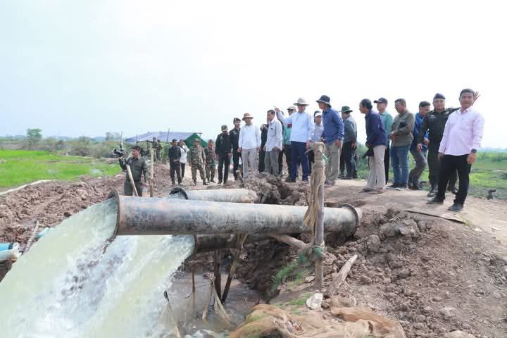 ឯកឧត្ដម គួច ចំរើន ចុះពិនិត្យទីតាំងកាបូមទឹកសង្គ្រោះស្រូវប្រាំងប្រជាកសិករ បីឃុំក្នុង ស្រុកស្អាង