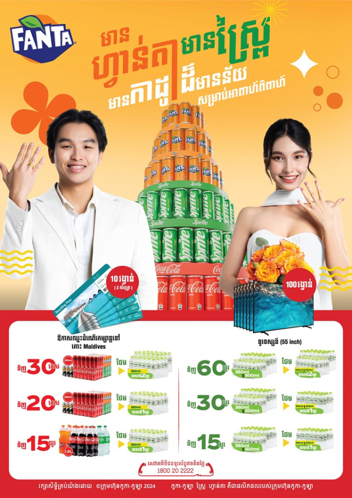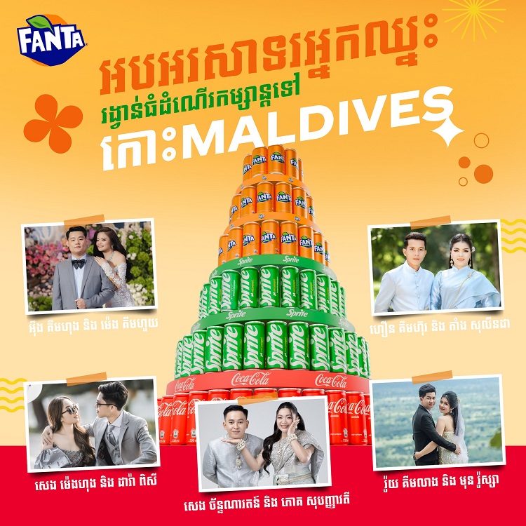 AKP ភ្នំពេញ ថ្ងៃទី ០៣ ខែ កុម្ភៈ ឆ្នាំ ២០២៥ – ការទន្ទឹងរង់ចាំបានមកដល់ហើយ កម្មវិធីផ្តល់សំណាងពី ហ្វាន់តា និងស្ព្រៃ សម្រាប់គូស្វាមីភរិយាថ្មីត្រូវបានបញ្ចប់ដោយក្តីរីករាយបំផុត ដែលគូស្វាមីភរិយាចំនួន ៥គូ បានឈ្នះរង្វាន់ និងកំពុងធ្វើដំណើរកម្សាន្តទៅក្រេបទឹកឃ្មុំក្នុងក្តីស្រមៃរបស់ពួកគេនៅកោះម៉ាល់ឌីវ។ នេះបើយោងតាមសេចក្តីប្រកាសព័ត៌មានរបស់ក្រុមហ៊ុន កូកា-កូឡា កម្ពុជា។